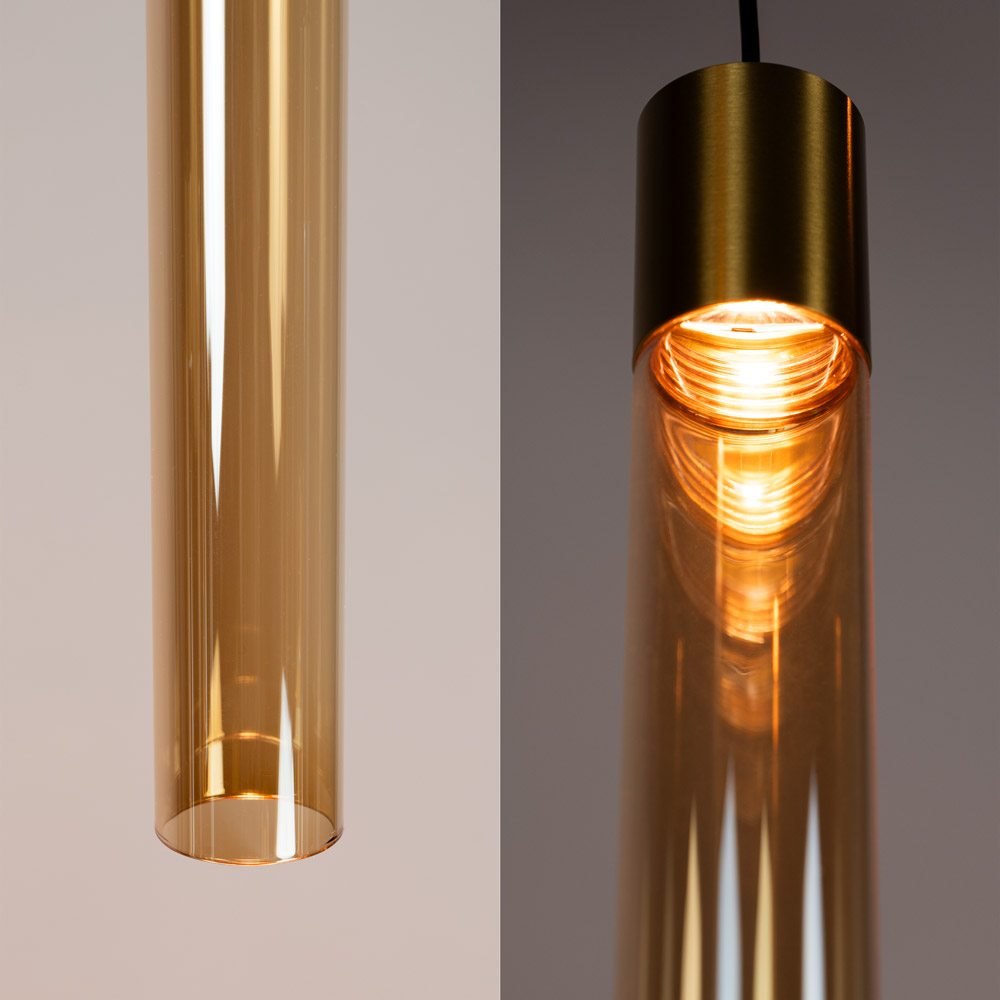 Homepagina / Lampen / Eettafellampen / 13-lichts LED hanglamp met amber glazen cilinders