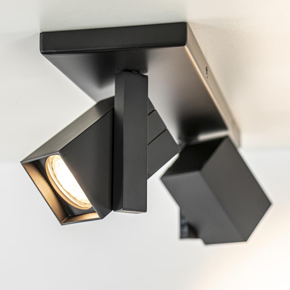 Homepagina / Lampen / Opbouwspots / 2-Lichts plafondlamp met vierkante spots mat zwart