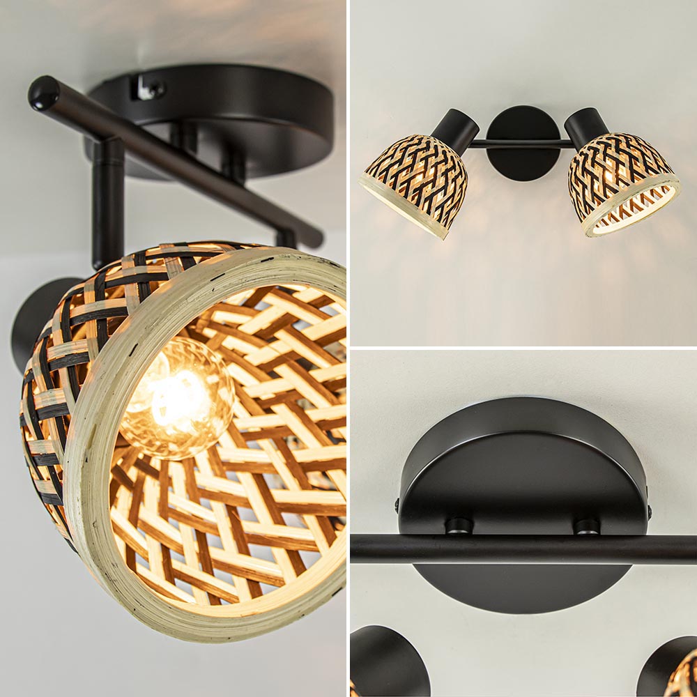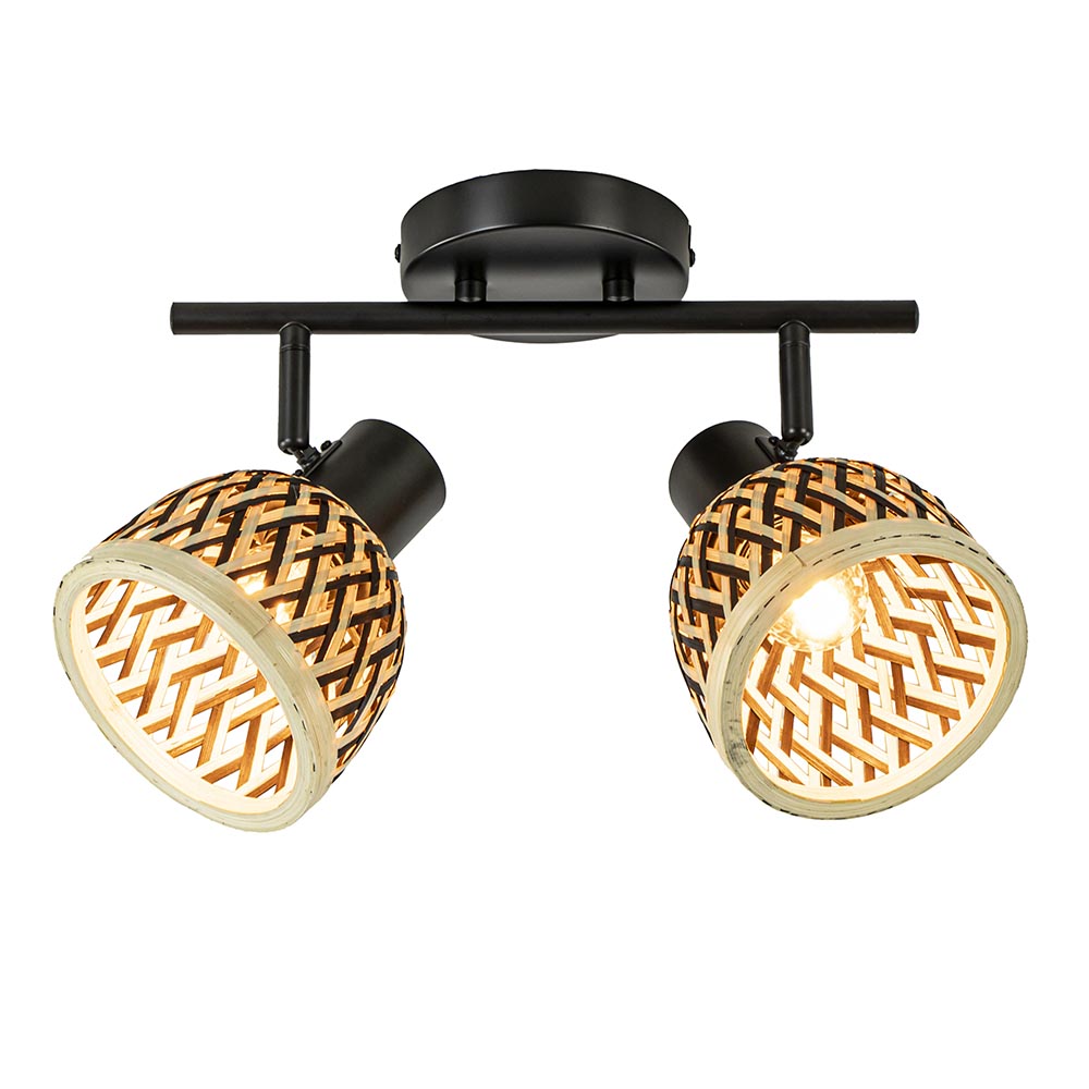Homepagina / Lampen / Plafondlampen / 2-Lichts plafond/wandlamp zwart met bamboe kappen