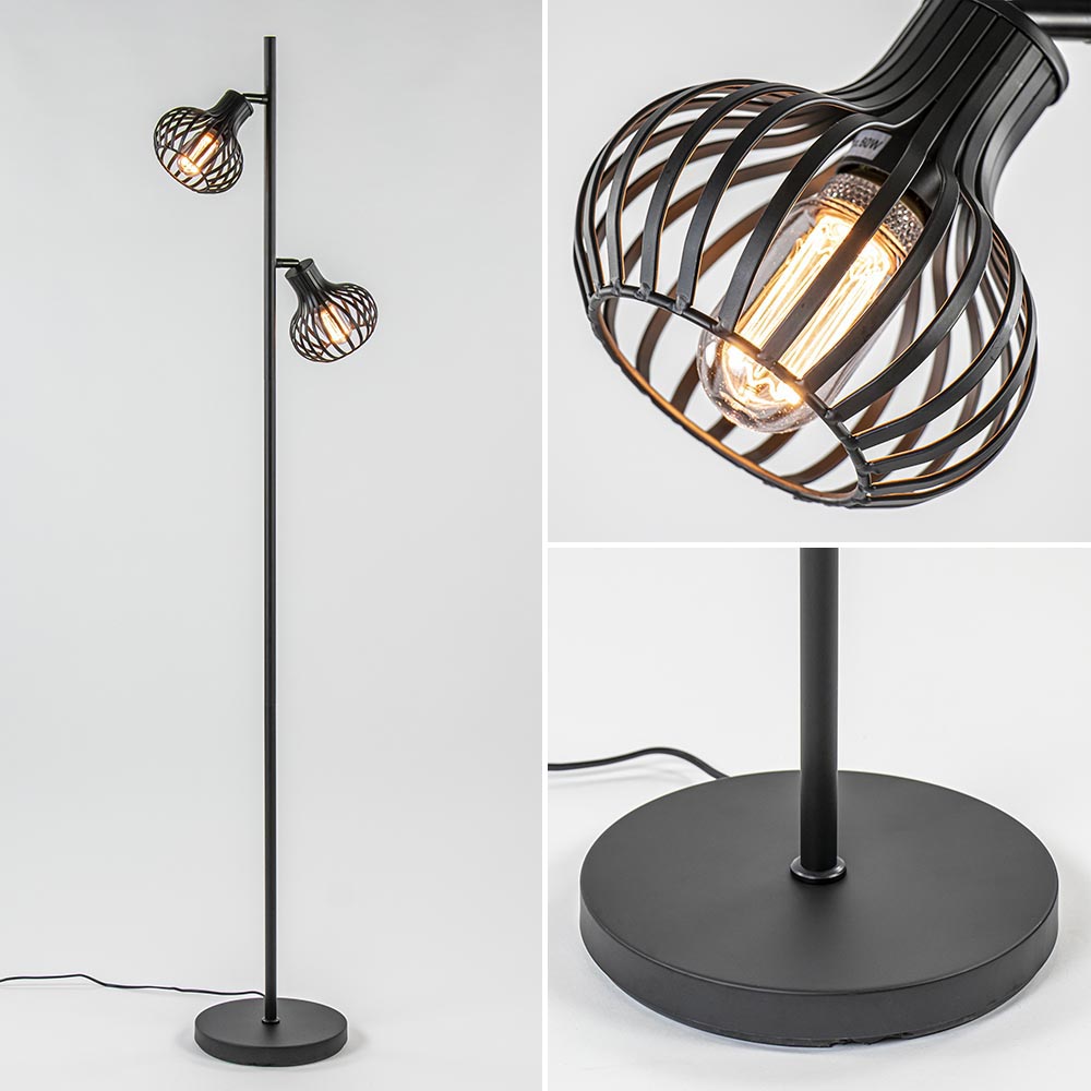 Homepagina / Lampen / Draadlampen / 2-lichts Vloerlamp Daria – Mat zwart