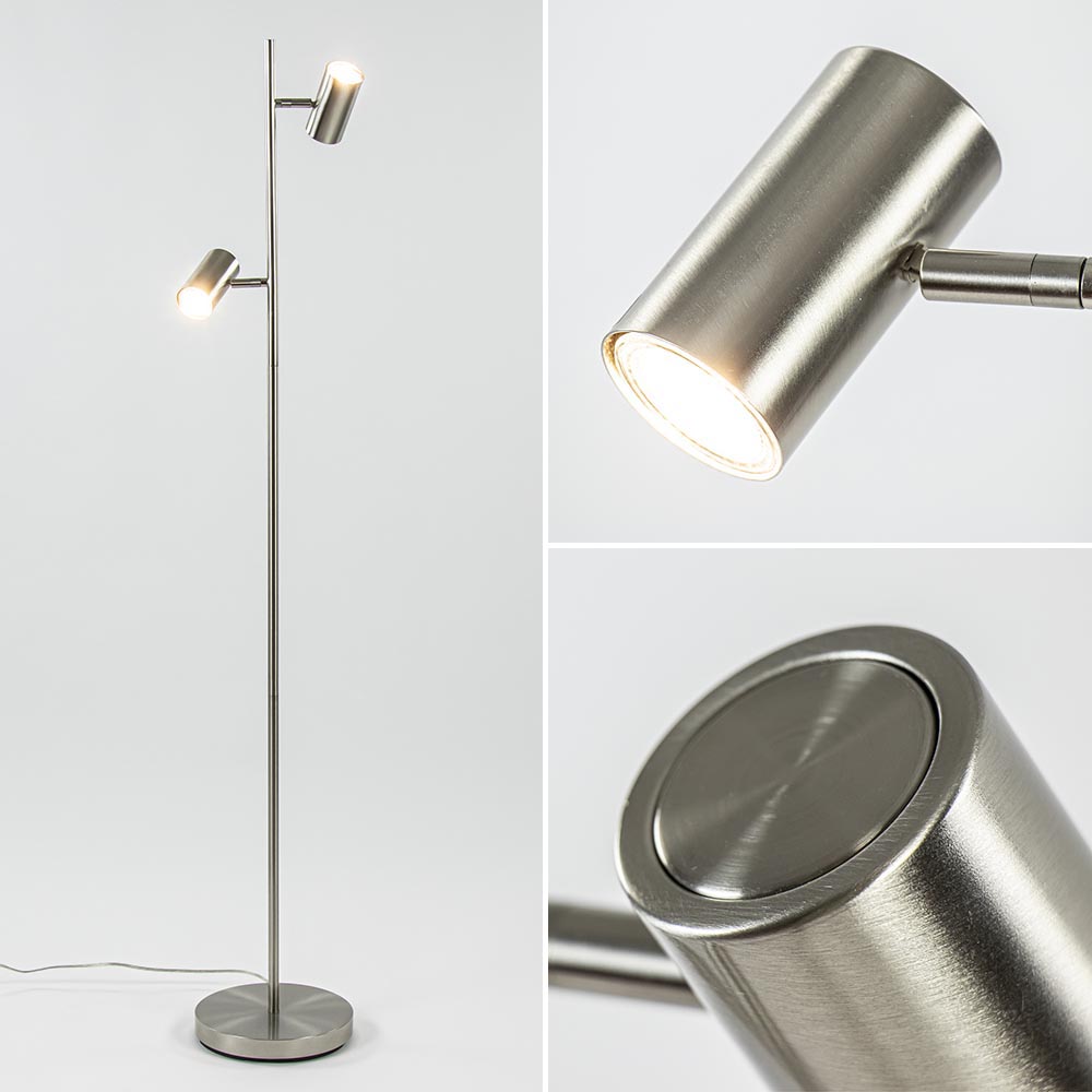 Homepagina / Lampen / Leeslampen / 2-Lichts vloerlamp nikkel met dimbare spots