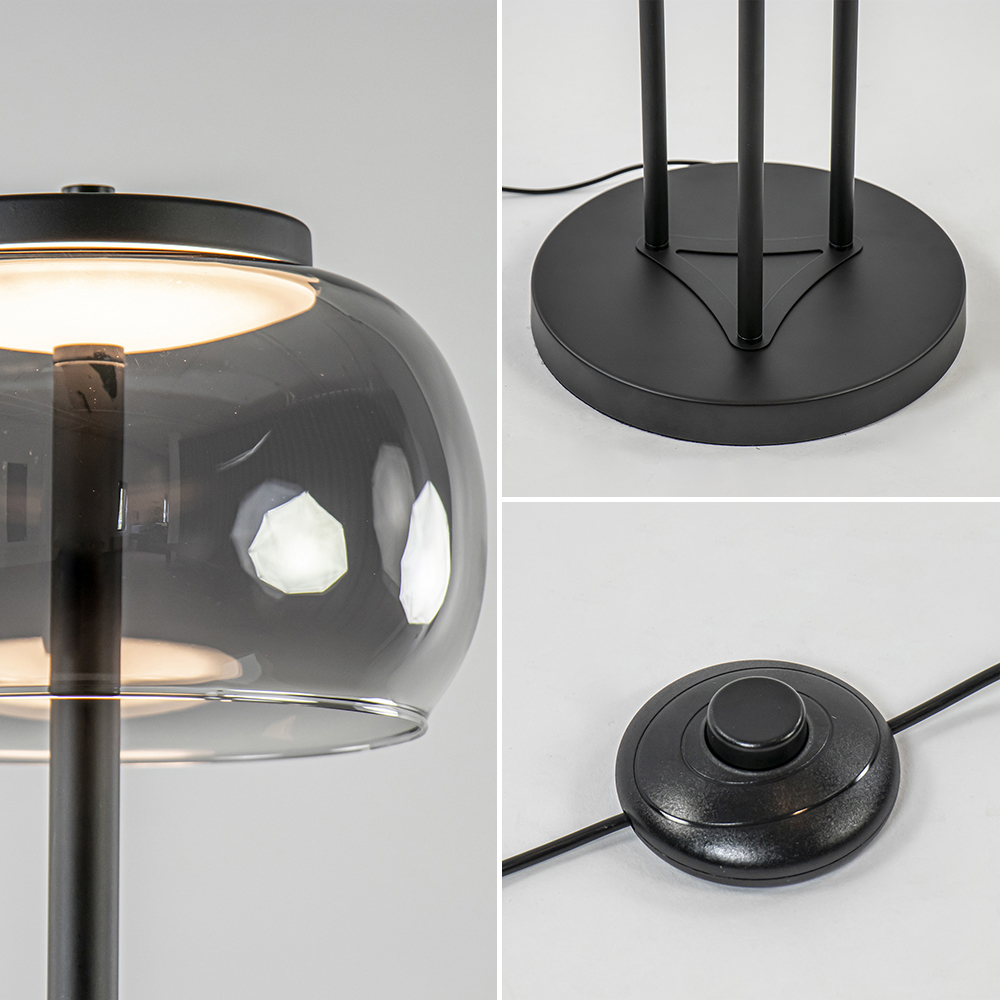 Homepagina / Lampen / Vloerlampen / 3-Lichts LED vloerlamp zwart met smoke glazen kappen dimbaar