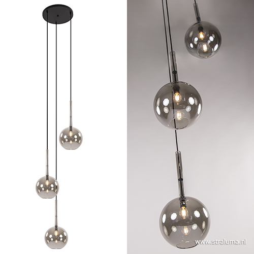 Homepagina / Lampen / Hanglampen / 3-Lichts videlamp smoke glas met zwart