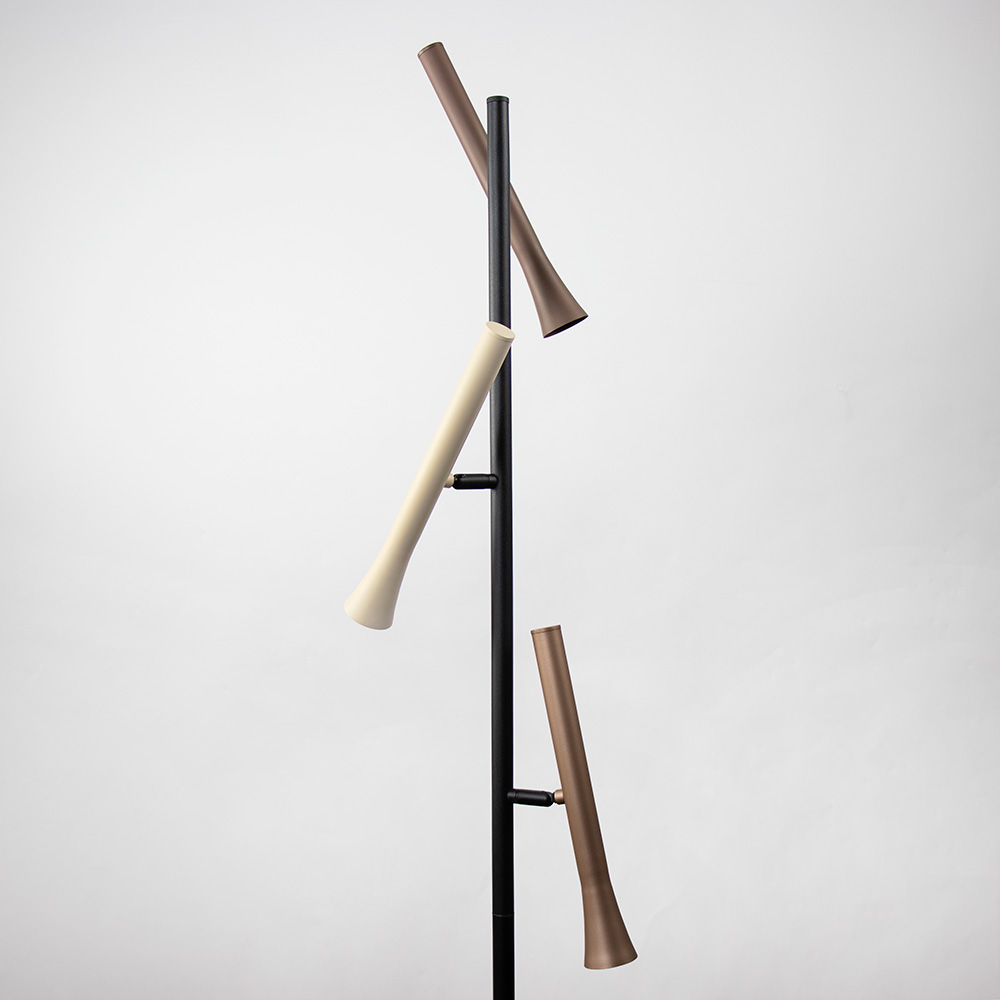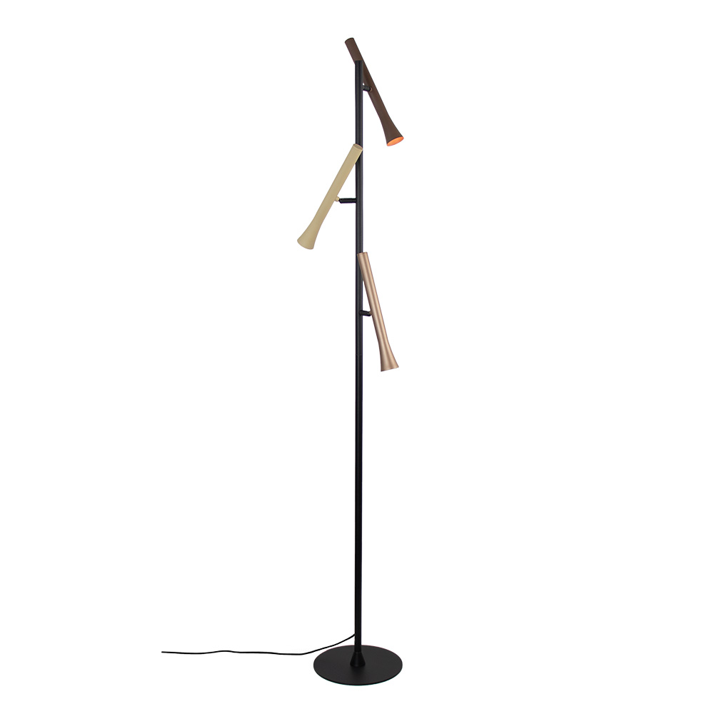 Homepagina / Lampen / Tafellampen / 3-Lichts vloerlamp – Rosé goud, crème, bruin, zwart