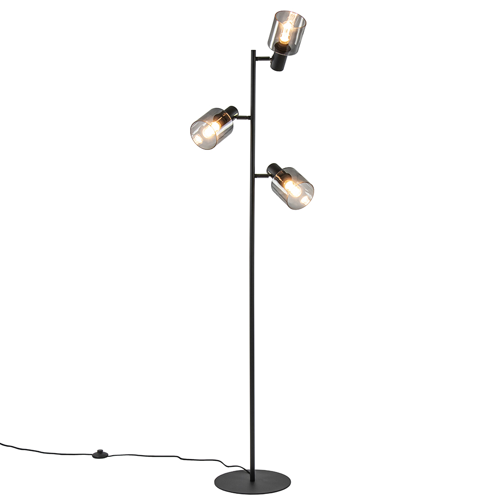 Homepagina / Lampen / Vloerlampen / 3-lichts vloerlamp zwart met smoke glazen kappen