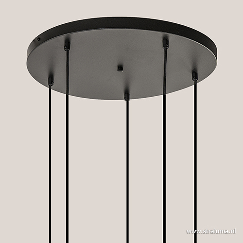 Homepagina / Lampen / Hanglampen / 5-lichts plaat rond + pendels zwart ex.lb