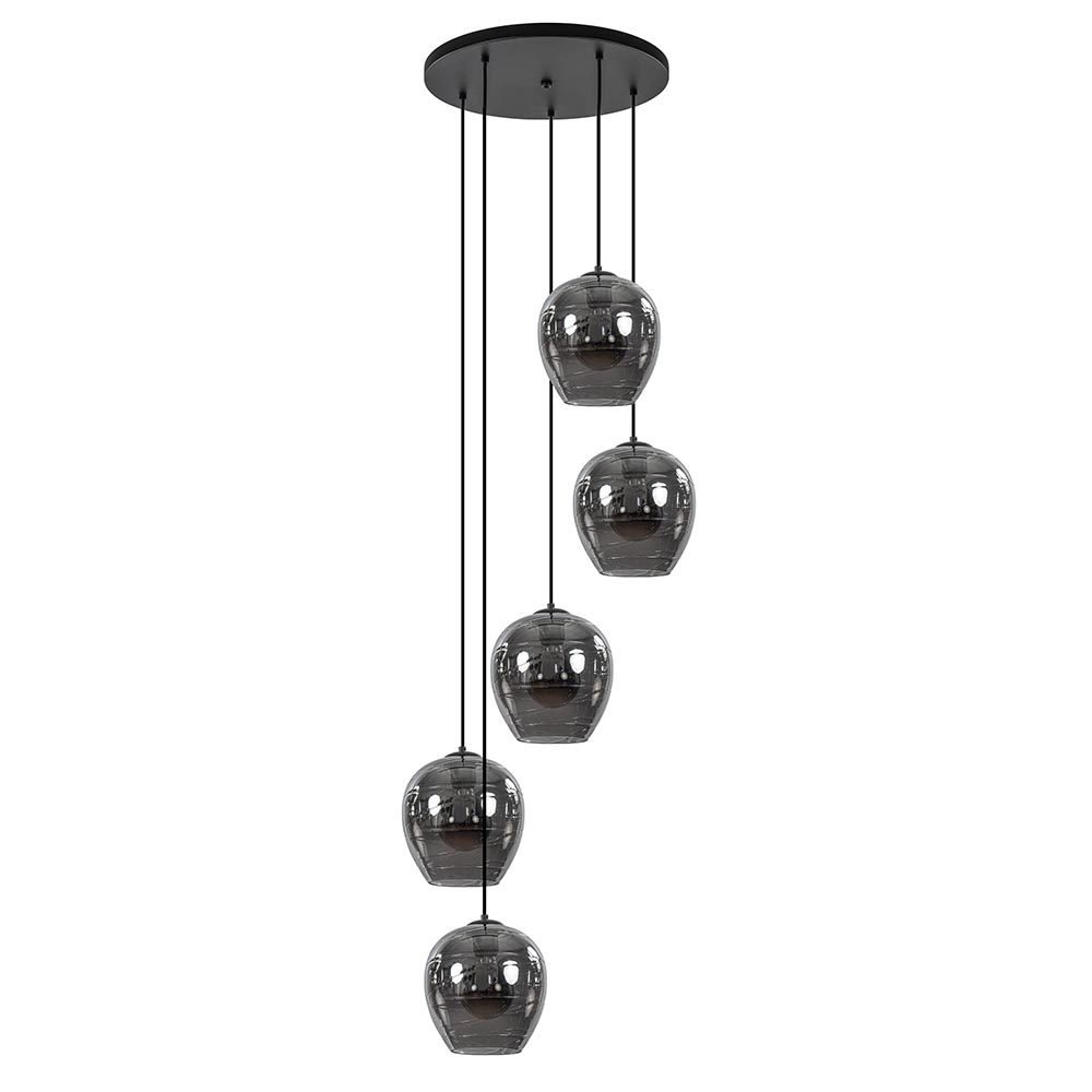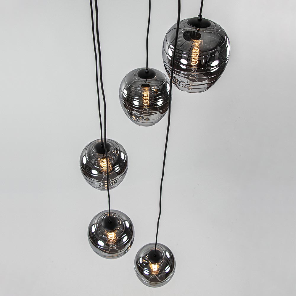 Homepagina / Lampen / Hanglampen / 5-Lichts ronde hanglamp zwart met smokey glas
