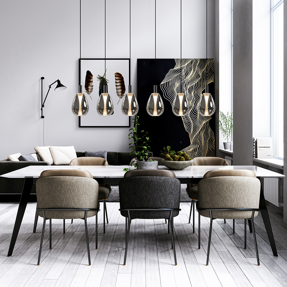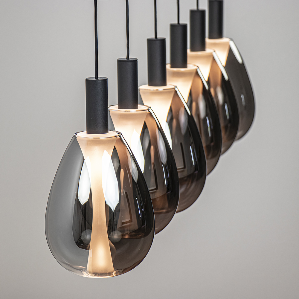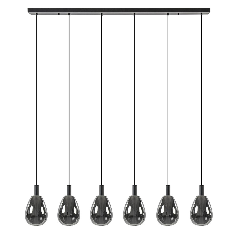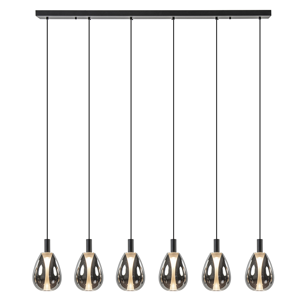 Homepagina / Lampen / Eettafellampen / 6-Licht LED eetkamerhanglamp smoke glas met zwart