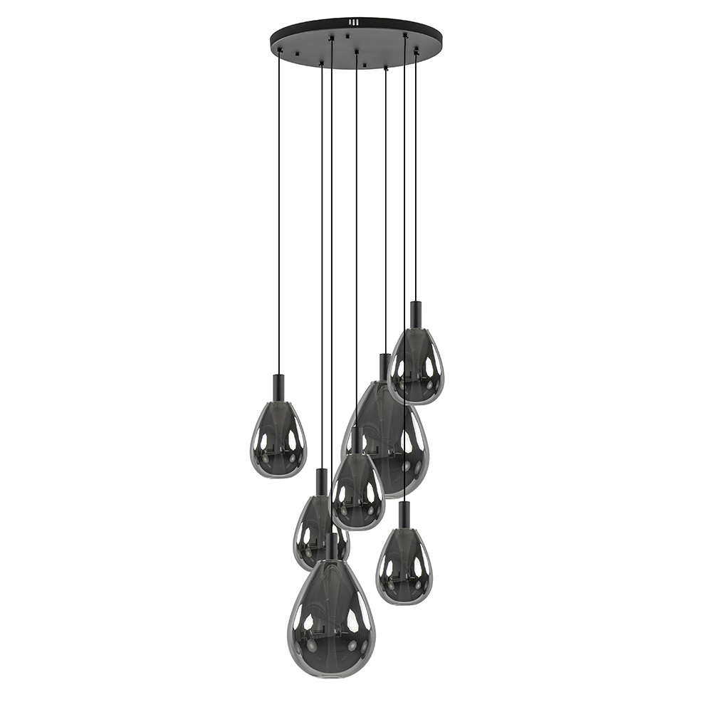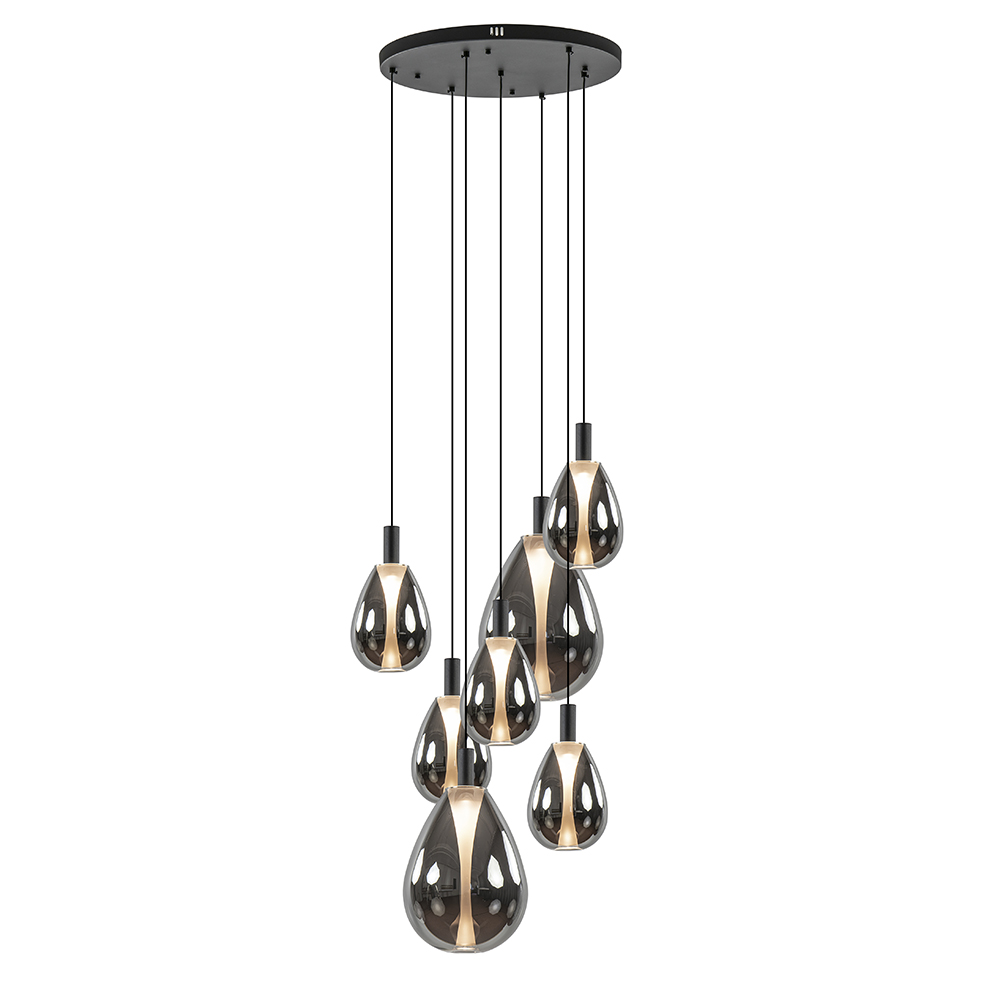 Homepagina / Lampen / Eettafellampen / 7-Lichts ronde LED hanglamp zwart met smoke glas