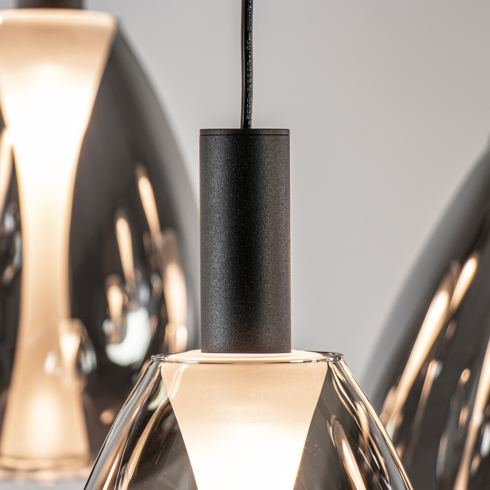 – afm: Ø50×350 cm – bevestiging: Ø50×3 cm – diverse kappen – smoke glas – metaal, mat zwart – inclusief LED – 2700 Kelvin – 3626 lumen – in hoogte verstelbaar – dimbaar (exclusief) – gewicht: 7,4 kg