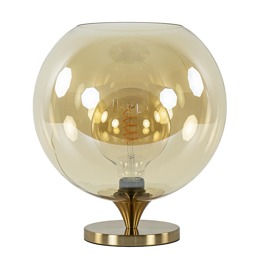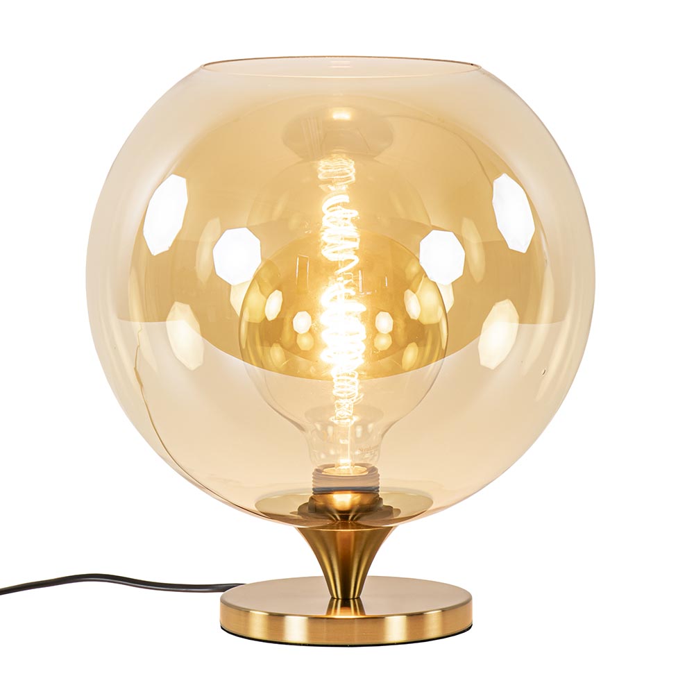 Homepagina / Lampen / Tafellampen / Amber glazen tafellamp met gouden voet