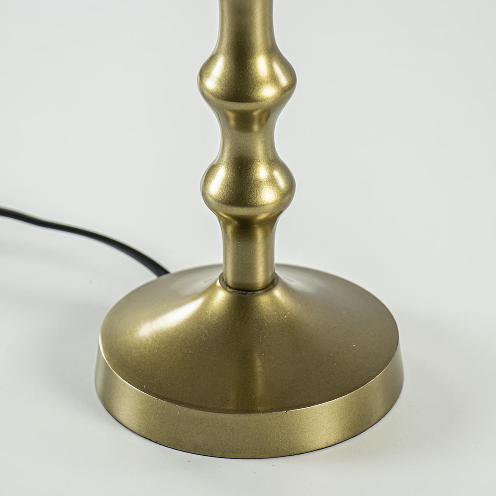 Deze antiek ogende lampvoet combineert mooi met een klassiek interieur. De tafellamp is gemaakt van metaal en uitgevoerd in een antiek bronzen kleur. De lampvoet is te combineren met verschillende kleuren kap. De tafellamp heeft een snoer van 140 CM met de schakelaar op 45 CM van het armatuur. De lamp wordt exclusief kap geleverd.