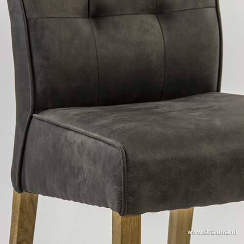 KLEUR/MATERIAAL: – zitting: stof, antraciet – poten: licht hout
