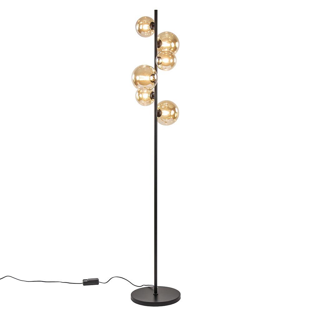 Homepagina / Lampen / Vloerlampen / Art Deco vloerlamp zwart met amber glazen bollen