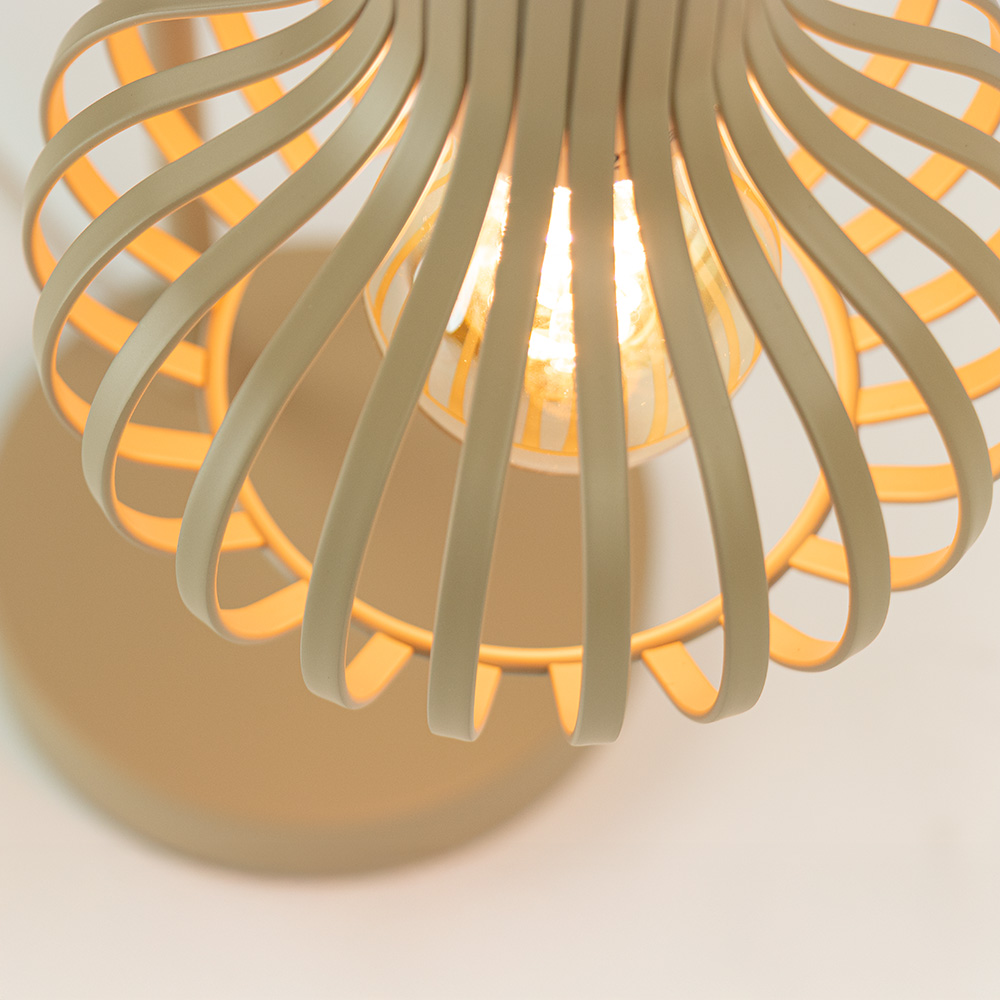 Een stijlvolle en sfeervolle toevoeging aan je interieur! Deze elegante tafellamp is een echte blikvanger op je dressoir, bureau of nachtkastje. De opengewerkte kap met speelse metalen spijlen zorgt voor een prachtige lichtval en een warme, uitnodigende sfeer. Dankzij de neutrale beige kleur past deze lamp perfect in diverse interieurstijlen, van modern tot Scandinavisch.