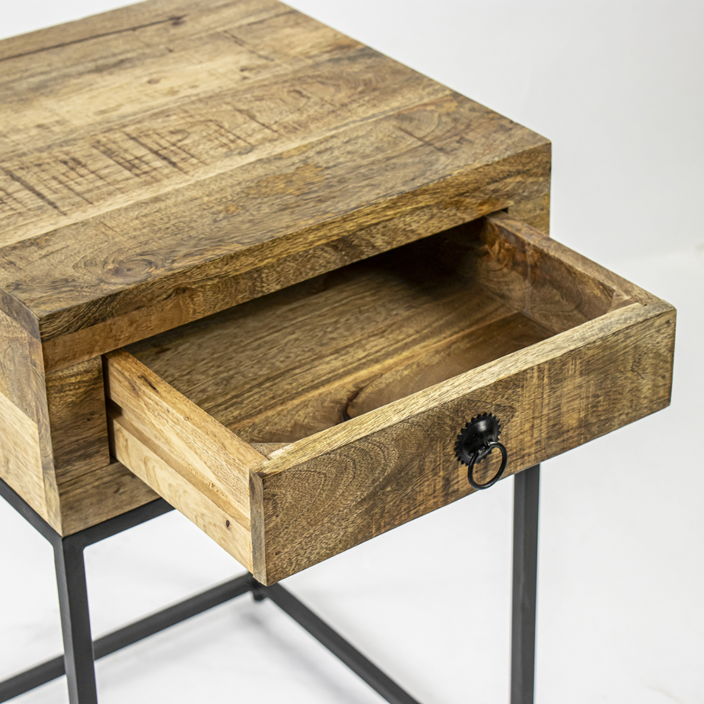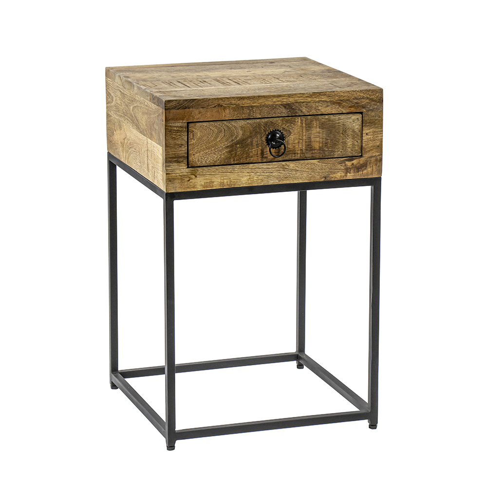 Homepagina / Wonen / Bijzettafels / Bijzettafel met lade mangohout/metaal