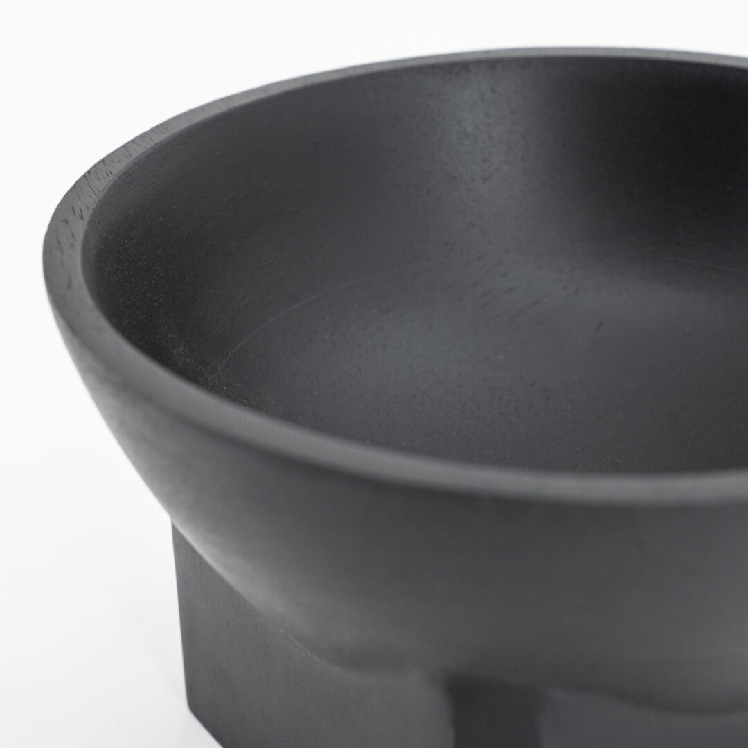Specificaties: ⠀⠀⠀⠀• Afmetingen: 17 x 17 x 10 cm (lxbxh) ⠀⠀⠀⠀• Kleur: Zwart ⠀⠀⠀⠀• Materiaal: Mangohout ⠀⠀⠀⠀• Vorm: Ronde schaal op blokvormige voet ⠀⠀⠀⠀• Gebruik: Decoratief – niet geschikt voor voedsel of water