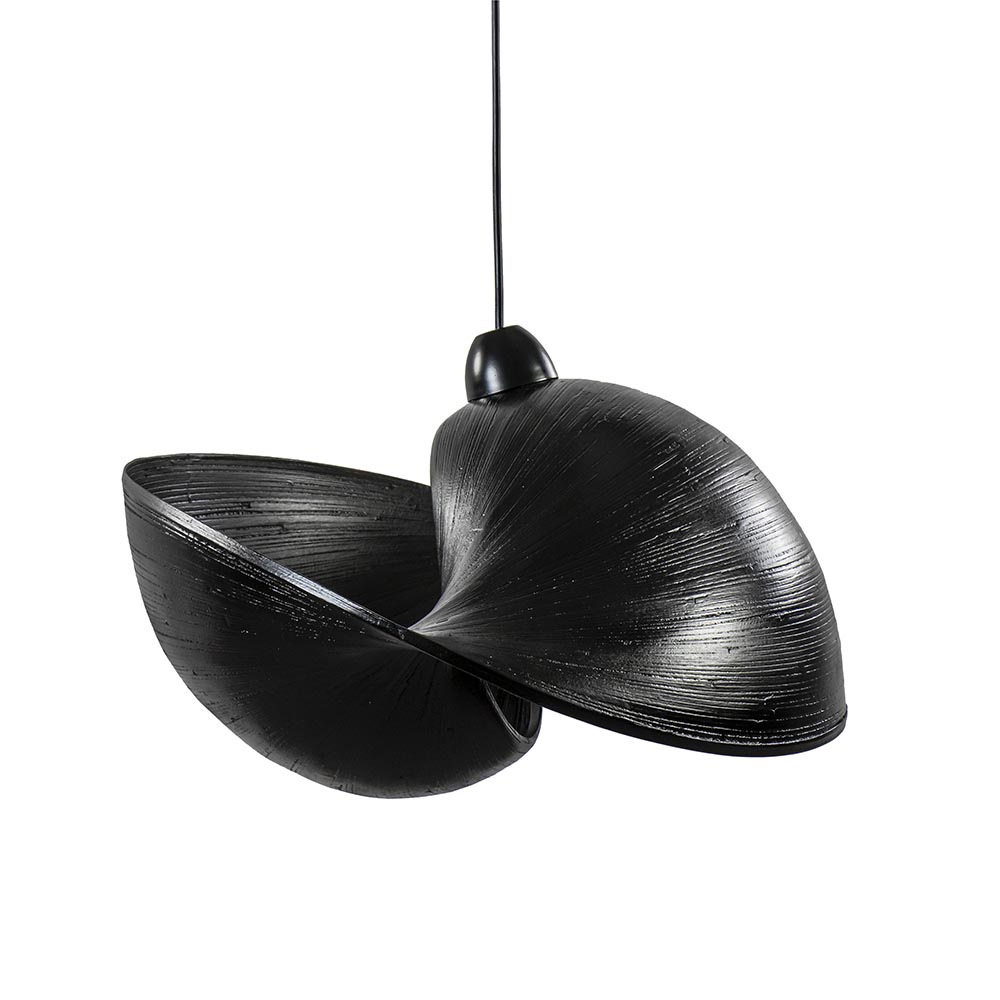 Het unieke schelpdesign is echt een eyecatcher van deze hanglamp. De hanglamp heeft aan twee kanten een opening en dit zorgt voor een mooie lichtverspreiding. Door de grootte van de hanglamp is deze geschikt voor boven een eettafel of in de slaapkamer. De zwarte kap is gemaakt van bamboe en hangt aan een zwart snoer die gemakkelijk in te korten is indien gewenst. De lamp wordt exclusief lichtbron geleverd.