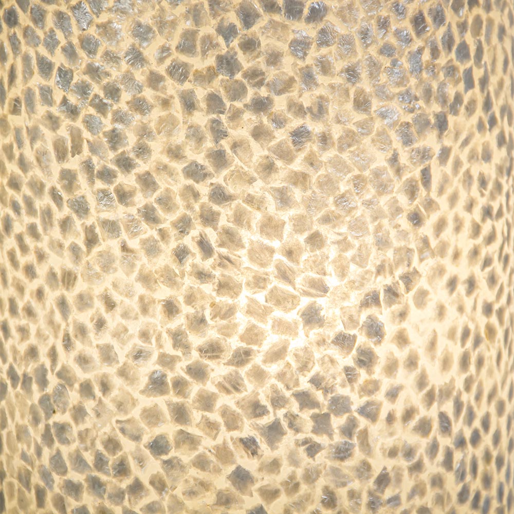 Homepagina / Lampen / Schelpenlampen / Botanische tafellamp cilinder met capiz schelpen wit