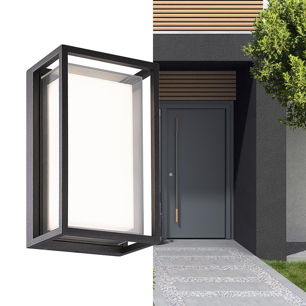 Een mooi strak design met meerdere lagen. Deze moderne buiten wandlamp heeft een strakke vormgeving en bestaat uit een aluminium frame die een kunststof kap behuisd. De heldere kap beschermd weer een opale diffuser die zorgt voor een sfeervolle mooie lichtverspreiding. De buitenlamp is voorzien van geïntegreerd LED zodat deze energiezuinig is. De antraciete wandlamp is IP65 goedgekeurd zodat deze overal kan hangen buiten. Ideaal voor naast de voor- en/of achterdeur of aan de schuur.