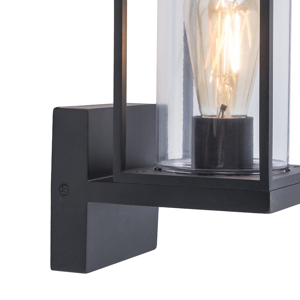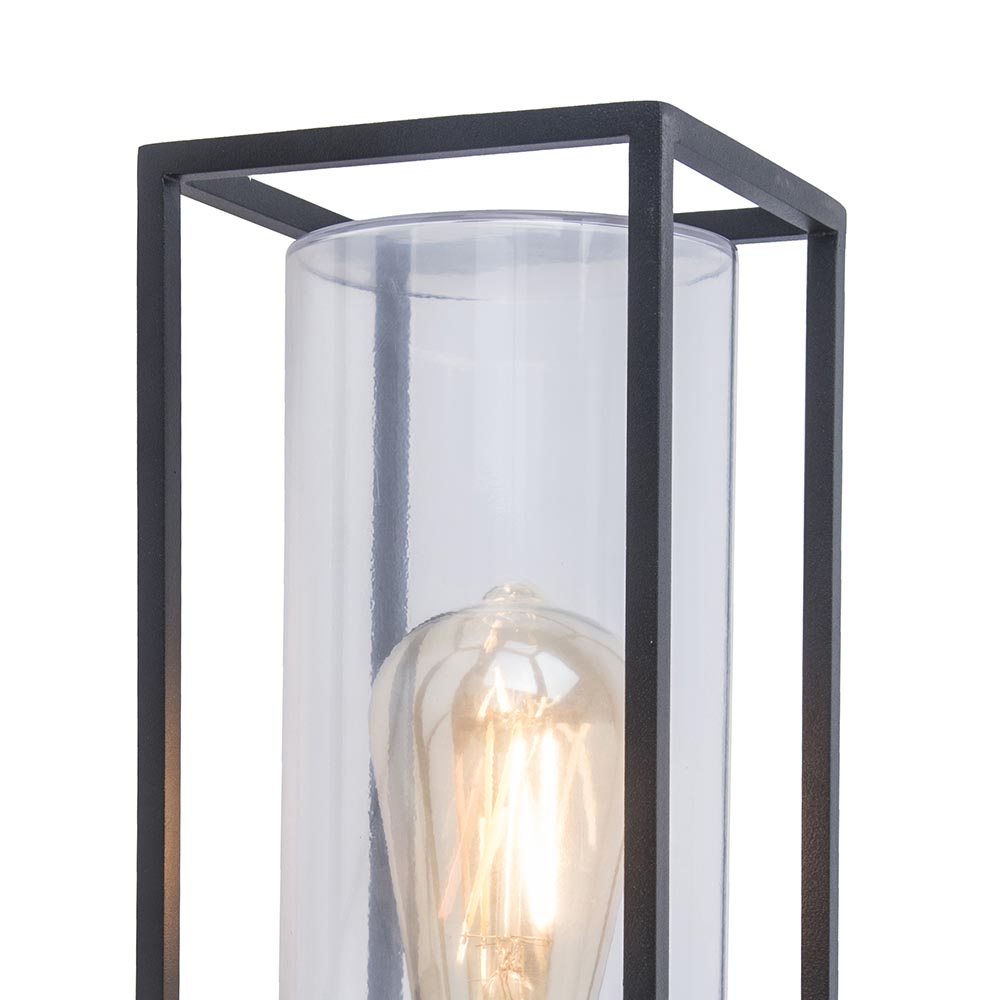 – afm: 12×17,2×31,3 cm – bevestiging: 12x3x12 cm – glas: Ø10×22 cm – aluminium – zwart – helder glas – IP44 – weerbestendig van -20° tot +50°C – exclusief lichtbron (E27)