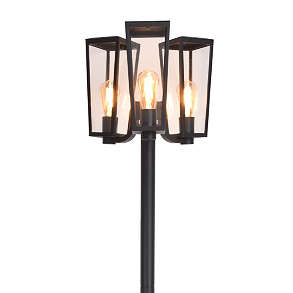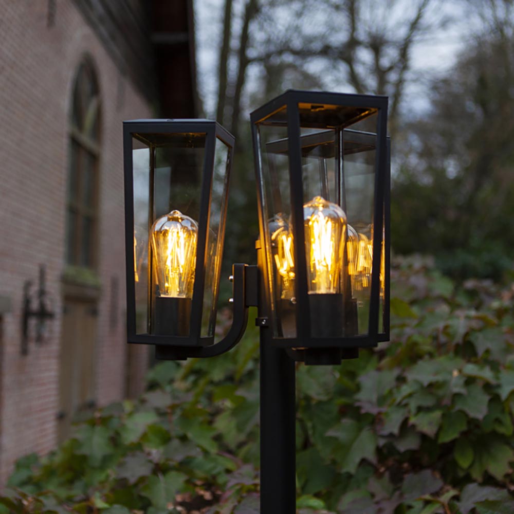 Prachtig in een klassieke, maar ook moderne tuin. Deze lantaarn is geïnspireerd op de klassieke lantaarn maar strak van design. Ideaal voor bij de oprit of achter in de tuin. De buitenlamp is gemaakt van aluminium en uitgevoerd in het mat zwart. De elegante buitenlamp is voorzien van 3 lantaarns die ieder zijn afgewerkt met helder glas. Doordat de lantaarns van binnen zijn voorzien van een E27 fitting kunt u zelf de lichtbron bepalen. Kies bijvoorbeeld voor een decoratieve LED spiraallamp of een smart lamp die matcht met uw andere lampen.