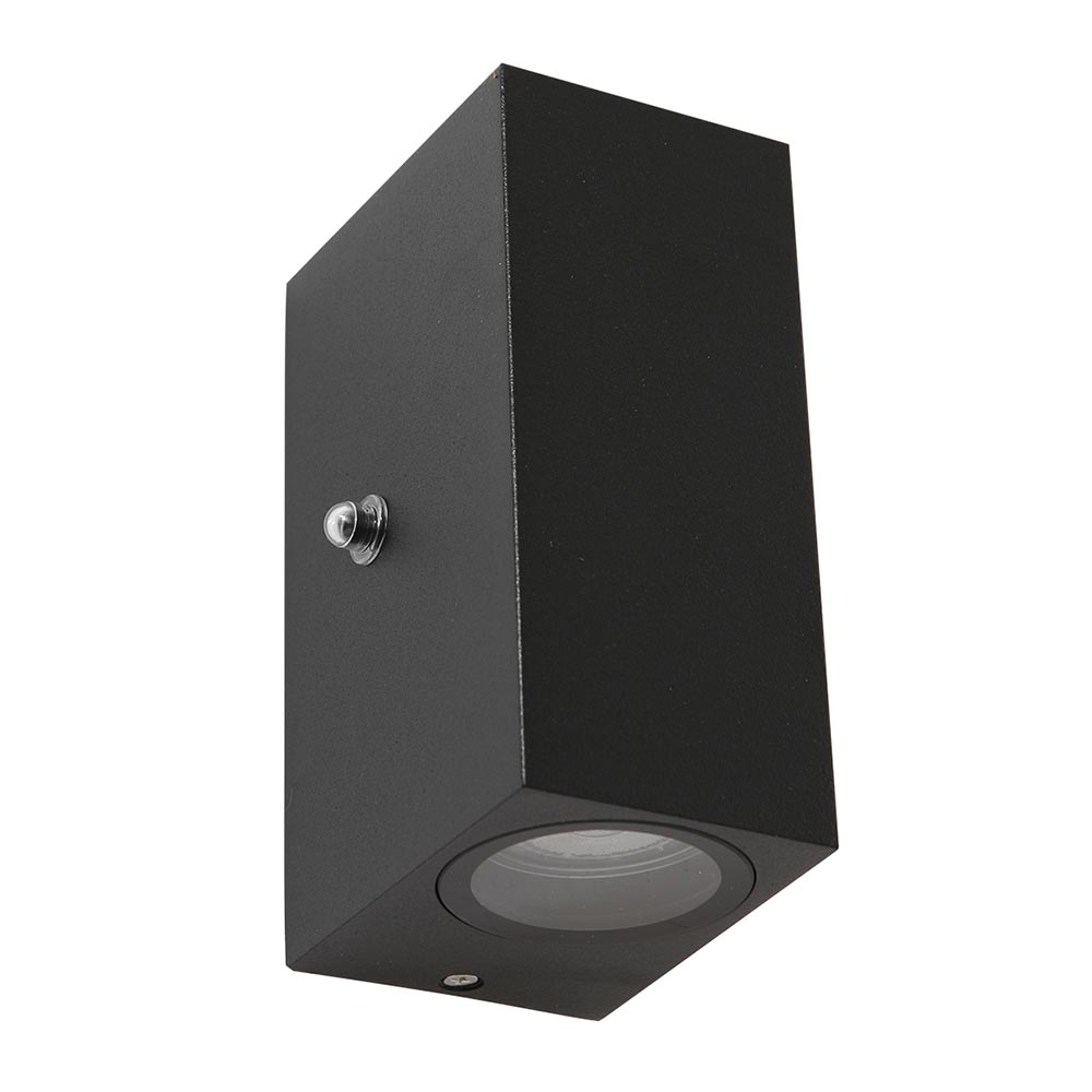 Een moderne up en down lighter die uw tuin nog meer sfeer geeft. De buiten wandlamp is rechthoekig en heeft een strakke afwerking. Het metalen armatuur is uitgevoerd in met zwart en heeft boven en onder helder glas. Achter het glas zitten de GU10 LED lichtbronnen welke energiezuinig zijn. Doordat de LED wandlamp zowel naar boven als onder verlicht ontstaat er een sfeervol zandloper effect op de ondergrond. Het zwarte armatuur is voorzien van een schemersensor, die zorgt dat de lamp automatisch aan en uit schakelt. Ideaal voor aan de schuur of schutting. De LED wandlamp is IP44 goedgekeurd.