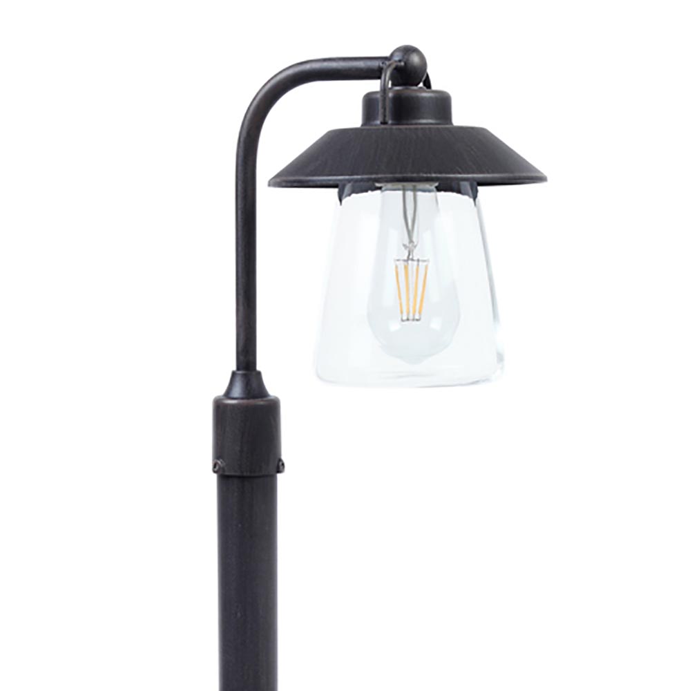 Deze prachtige buitenlamp is een verrijking voor de tuin. De lantaarn op paal is uitgevoerd in het zwart maar heeft een verweerde, verroeste look. Dit geeft de buitenlamp een stoere robuuste look die mooi past in diverse stijlen. De buitenlamp is IP44 goedgekeurd en kan wel tegen een stootje. De lantaarn is afgewerkt met een helder glazen kap met daarin een E27 fitting. Zo kunt u zelf de lichtbron bepalen, van decoratief tot smart.