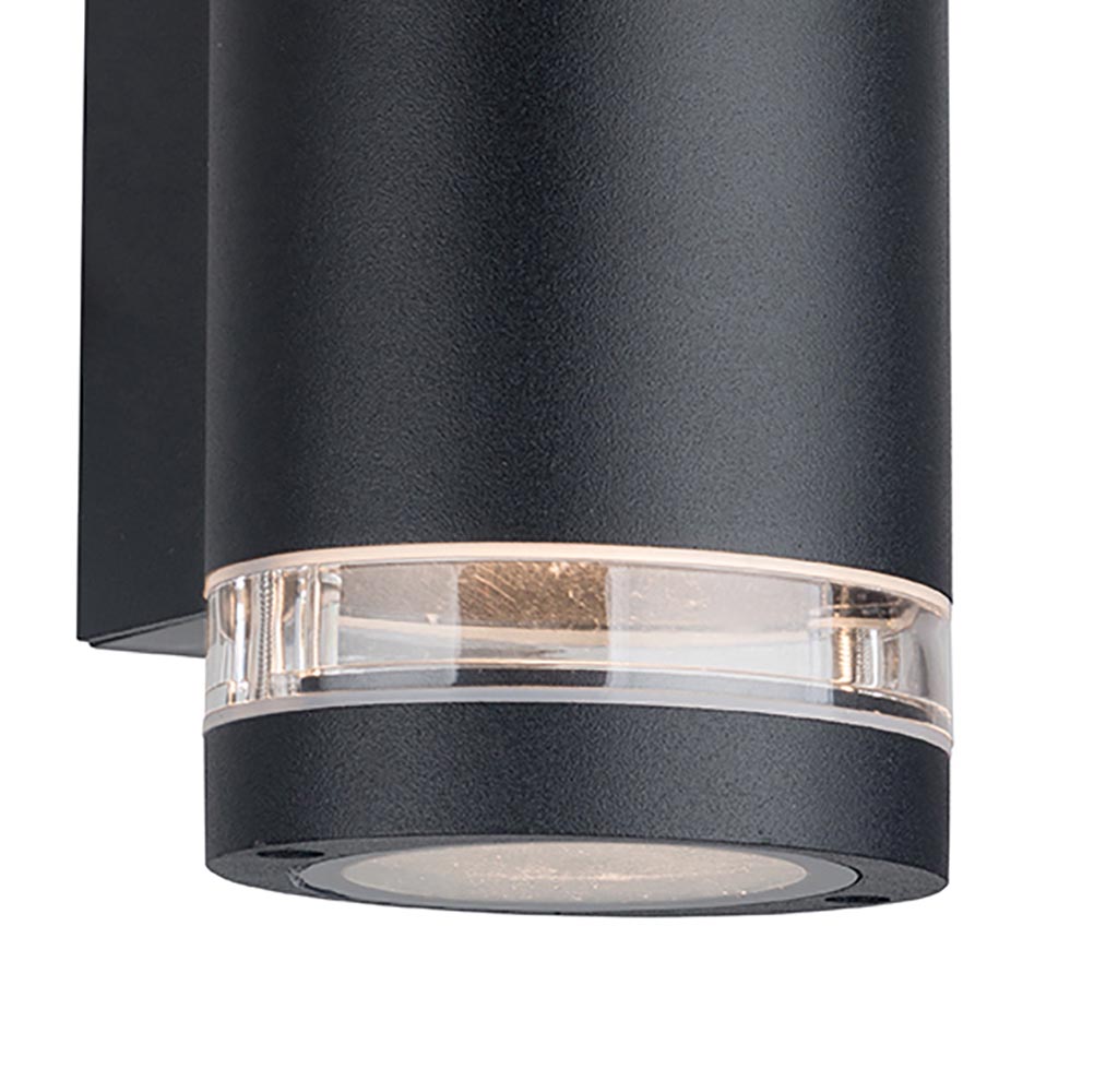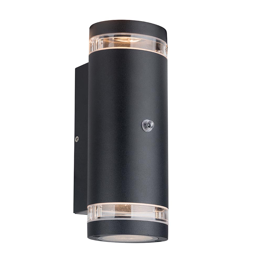 – afm: 10x9x23 cm – bevestiging: 6×17 cm – aluminium, zwart – glas – inclusief lichtbron (2x GU10 LED) – 2700 Kelvin – 345 lumen (2x) – IP44 goedgekeurd – inclusief lichtsensor
