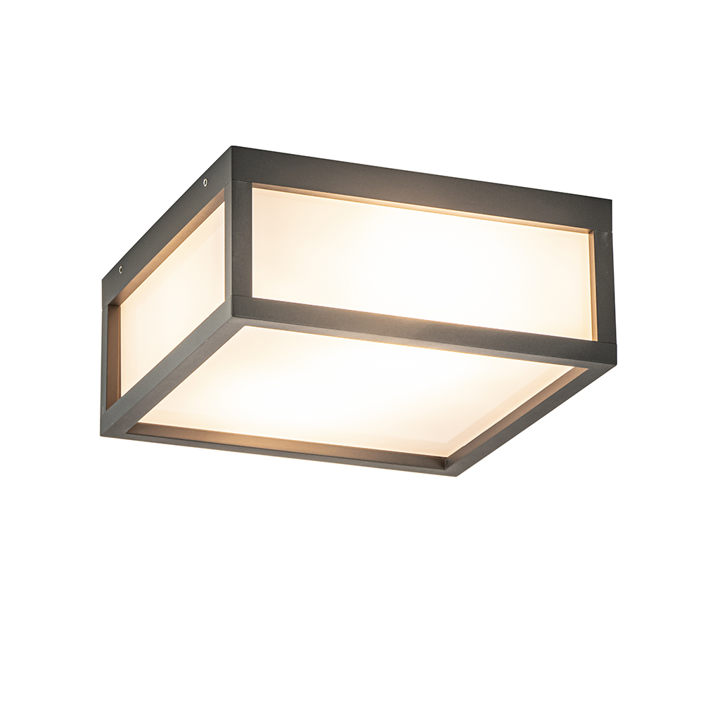 – afm: 23x23x10 cm – bevestiging: 22,5×22,5 cm – aluminium: donker grijs – kunststof kap – IP65 goedgekeurd – exclusief lichtbron (2x E27)