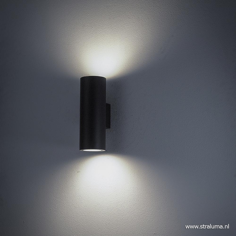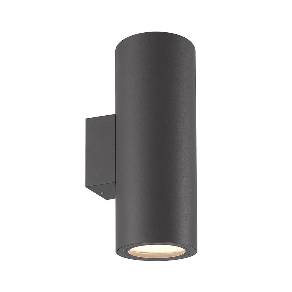 Een sfeervolle toevoeging aan uw tuin. Deze antraciete wandlamp is volledig gemaakt van aluminium en afgewerkt met glazen kapjes om de lamp af te sluiten. De moderne wandlamp is zowel een up- als een downlighter wat een sfeervol effect geeft op de muur of schutting. De buitenlamp is IP65 goedgekeurd en is weerbestendig van -10° tot +45°C.