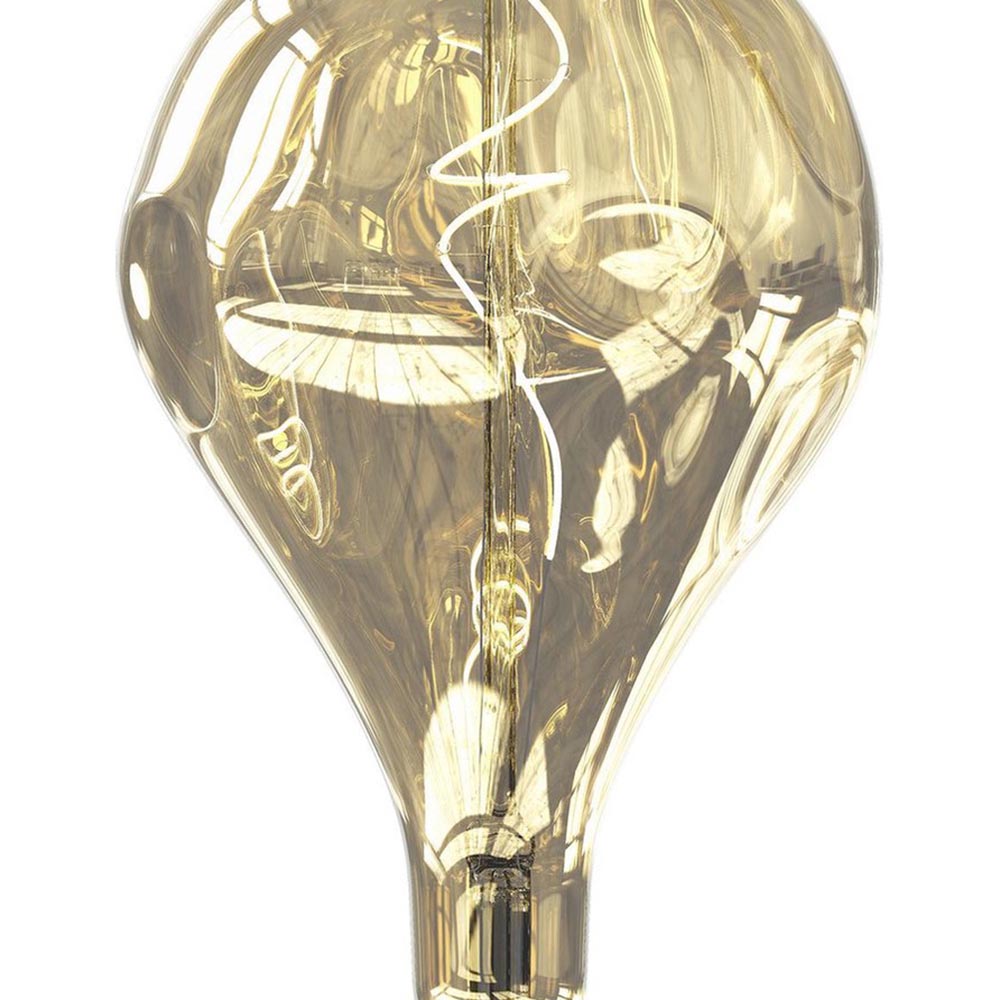 Een surrealistische versie van de klassieke gloeilamp. Deze druppelvormige bron met champagne kleurig glas komt uit de XXL serie en past super in de bijpassende E27 cord sets met de retro pendels. Het spiegelende glas geeft de lamp een luxe design uitstraling.