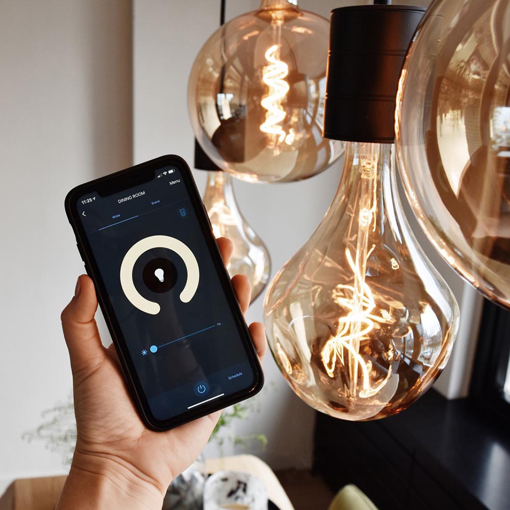 – afm: Ø16,5×28 cm – LED – E27 – 280 lumen – 1800 Kelvin – dimbaar via app