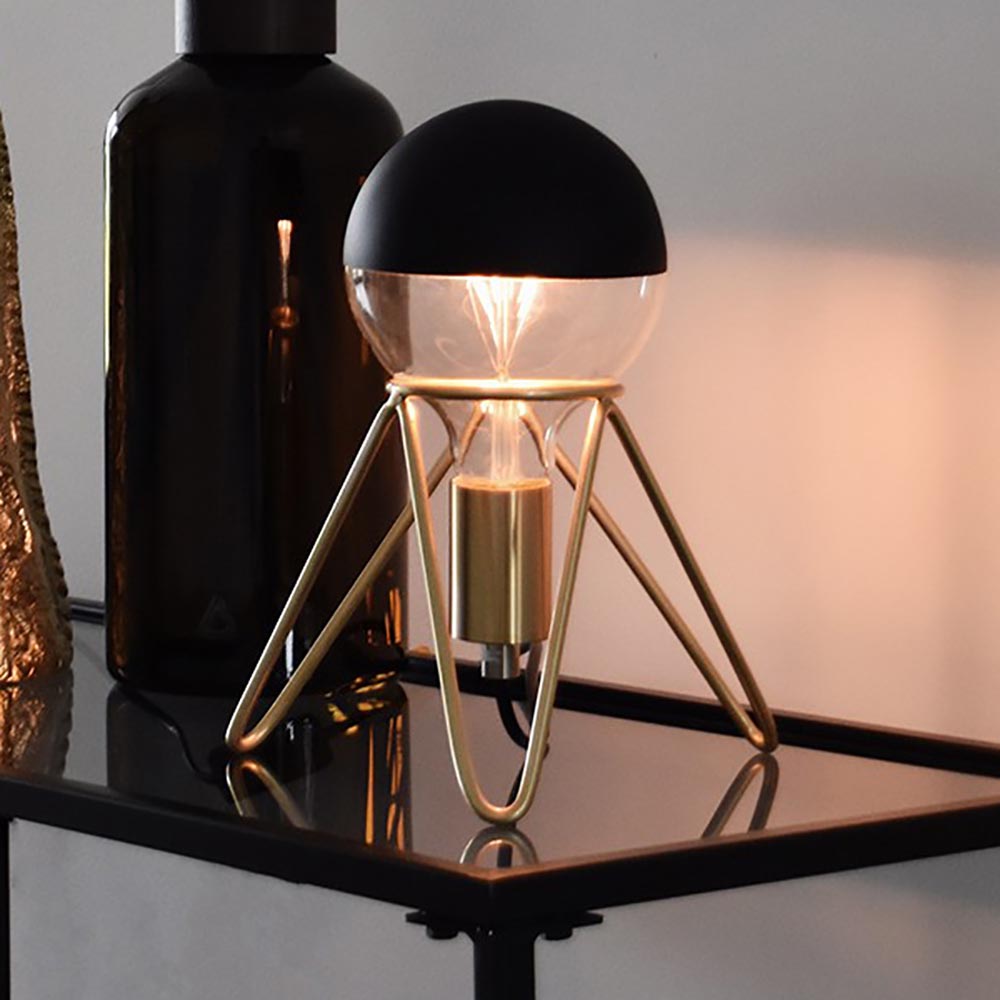 Deze leuke driepoot is een mooie toevoeging op een bijzettafel, nachtkastje of kast. De driepoot tafellamp is onderdeel van de Black and Gold collectie en wordt geleverd zonder lichtbron. Combineer het tafelarmatuur met een mooie decoratieve lichtbron om hem compleet te maken.