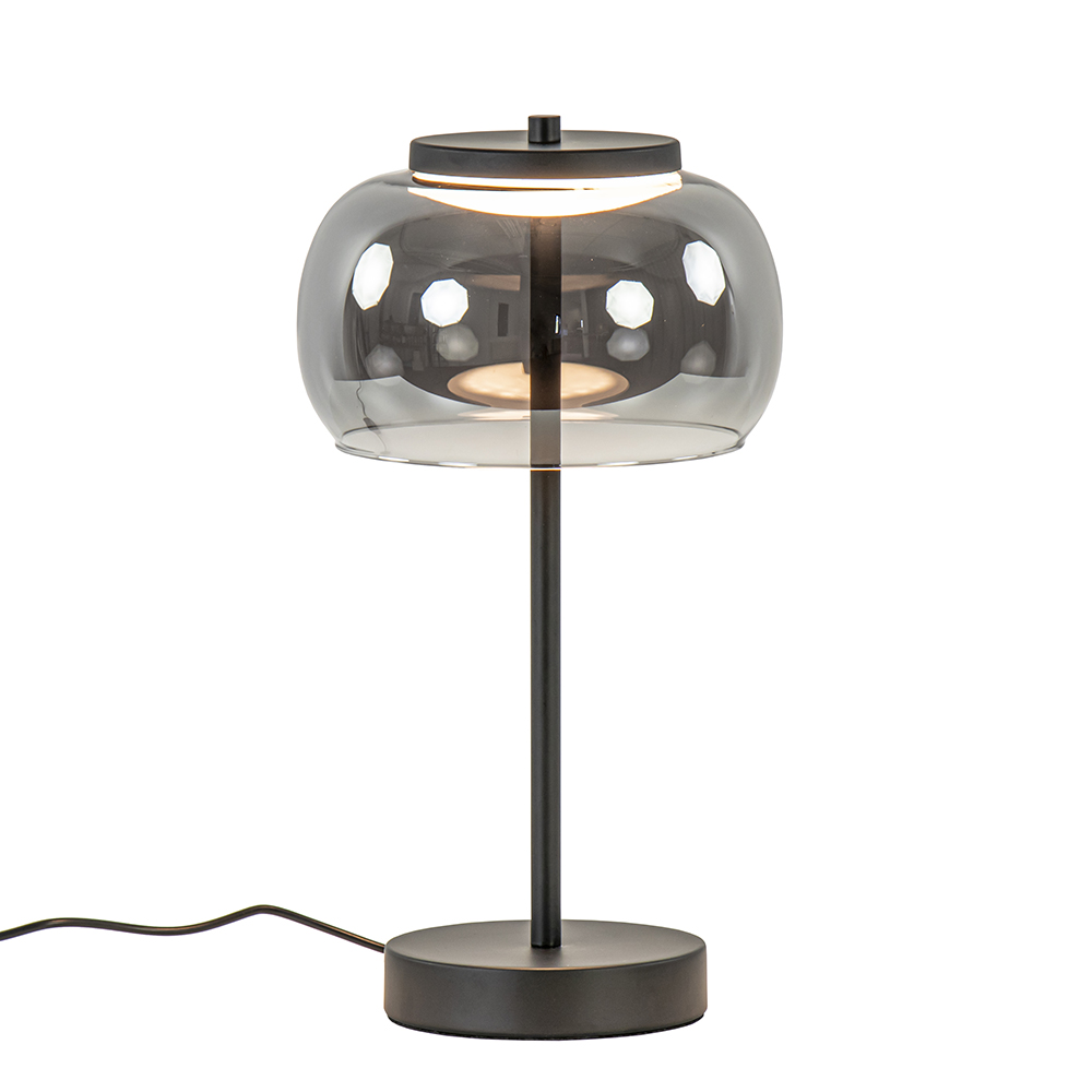 Homepagina / Lampen / Tafellampen / Chique LED tafellamp zwart met smoke glazen kap