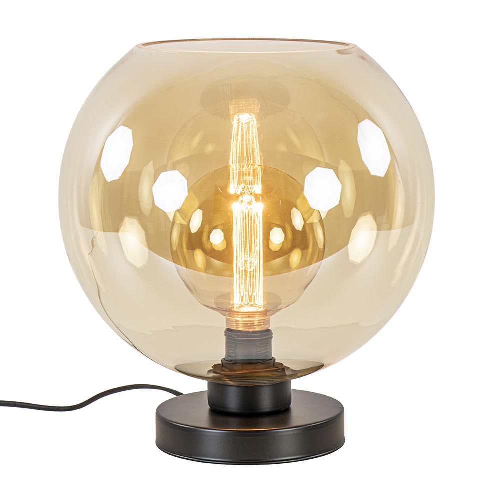Homepagina / Lampen / Tafellampen / Chique tafellamp amber glazen bol 30 cm