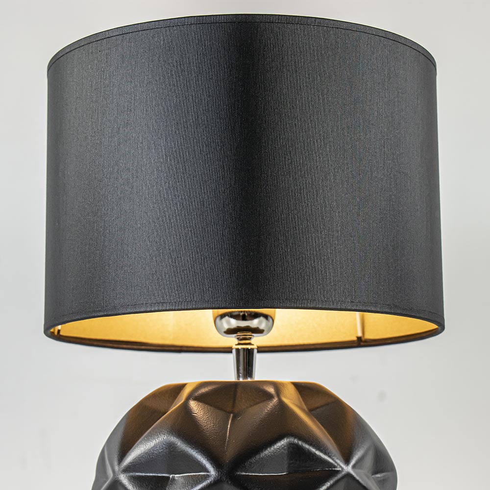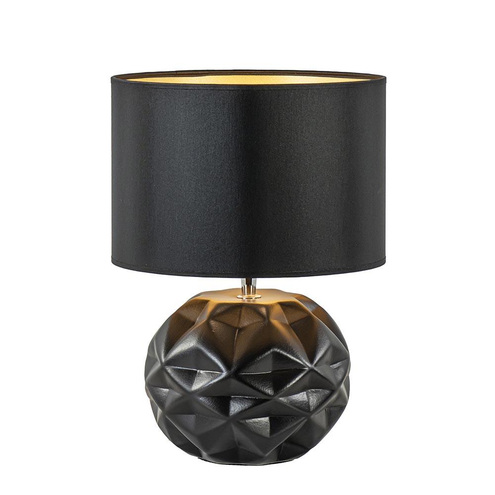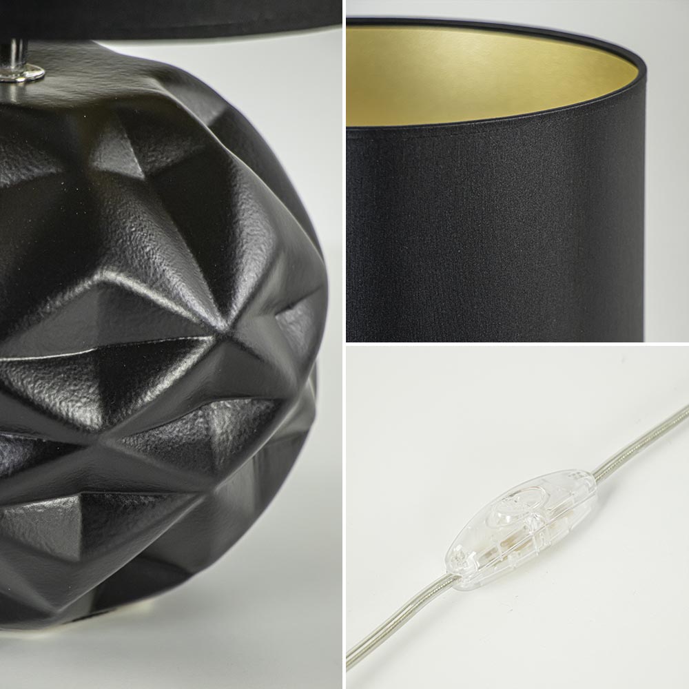 – afm: Ø25×35 cm – voet: Ø18×15 cm – kap: Ø25×17 cm – keramiek, zwart – stof, zwart/goud – transparant snoer: 170 cm – exclusief lichtbron (E27)