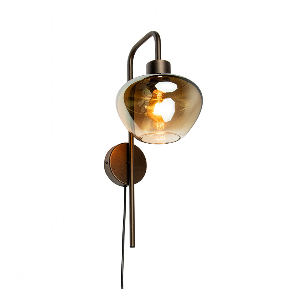 Homepagina / Lampen / Wandlampen / Chique wandlamp in cacao met amber goud glas
