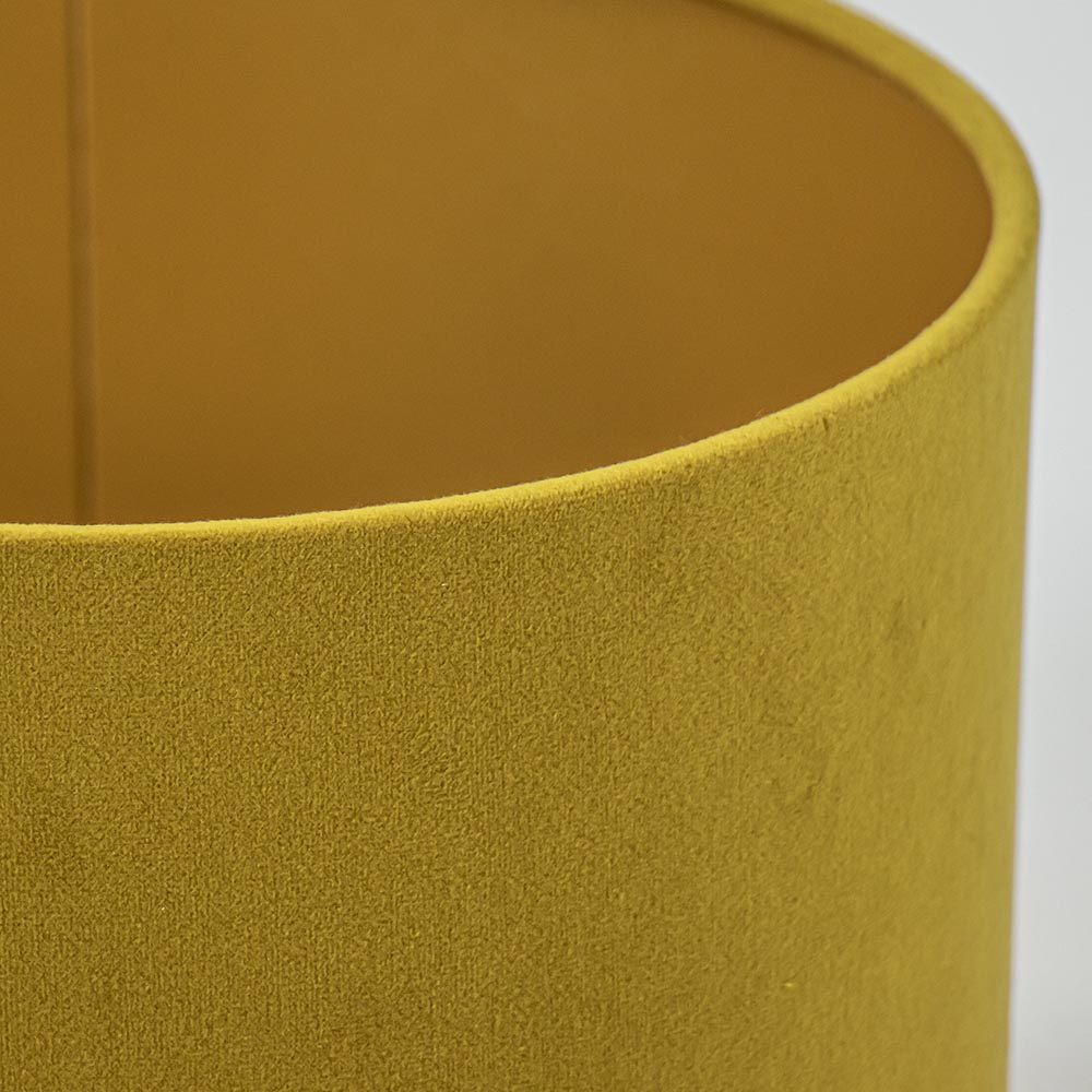 Deze kap heeft een prachtig warme kleur. Oker geel (mosterd) is een zeer trendy kleur in het interieur. De zachte glans van het fluweel, ook een echte trend, geeft een mooie diepte aan de kleur. Mooi op bijvoorbeeld een simpele zwarte lampvoet zoals 12210854.
