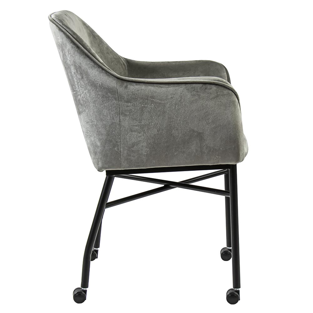 Homepagina / Wonen / Eetkamerstoelen / Comfortabele eetkamerstoel velours grijs met wieltjes