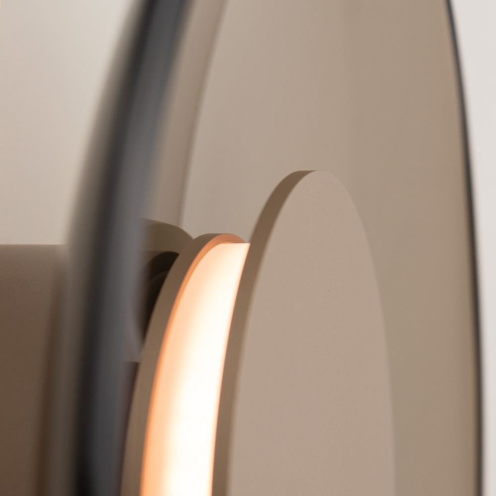 Wandlamp Dark Amber Night, uitgevoerd in een zand kleur met donker amberkleurig glas, gecombineerd moderne technologie en tijdloze elegantie. De warmwitte LED-lamp zorgt voor prachtig, sfeervol licht waarbij u door middel van een externe dimmer traploos de helderheid kunt regelen en zo aanpassen aan uw persoonlijke wensen. De wandlamp komt door zijn strakke design goed tot zijn recht in een modern strak interieur, maar is in diverse woonstijlen mooi te combineren.