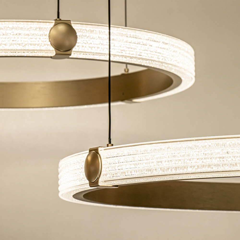 Homepagina / Lampen / Eettafellampen / Design hanglamp ringen geborsteld goud met kristal effect