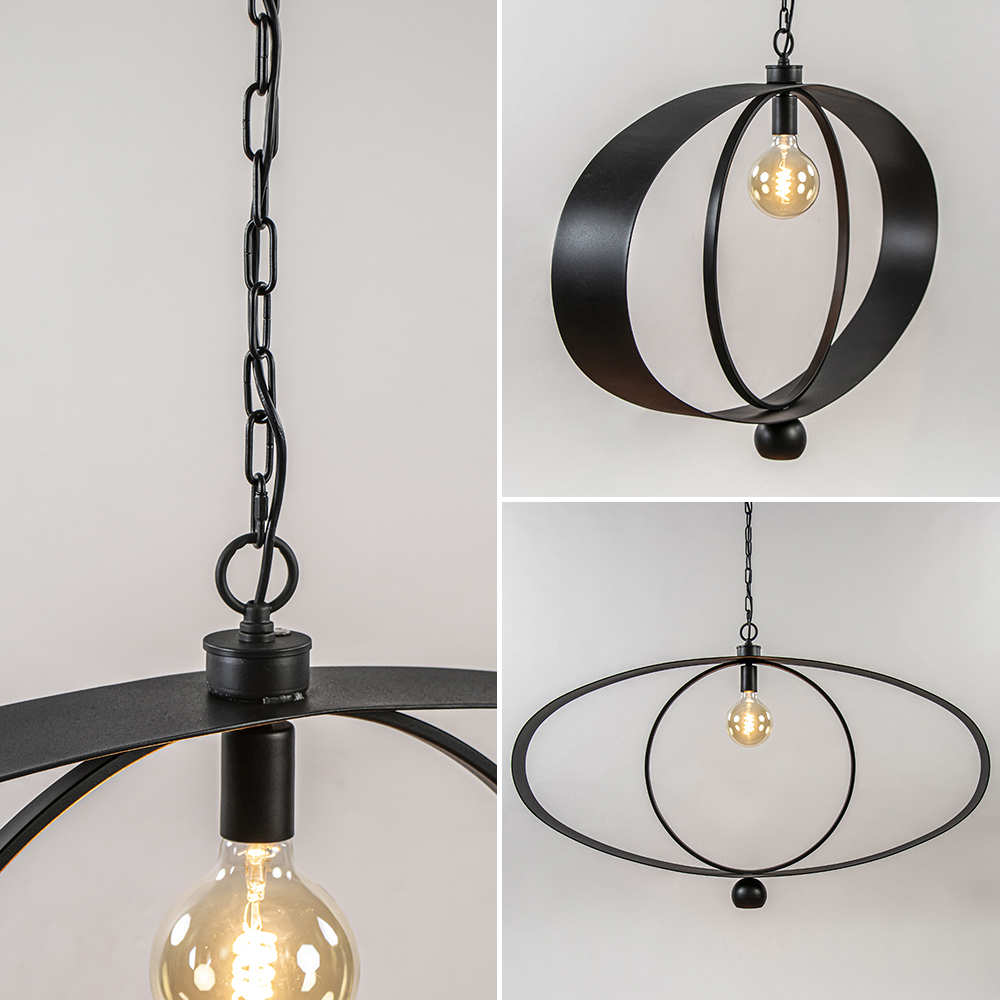 Deze stoere hanglamp met een robuuste uitstraling is een mooie toevoeging aan de eetkamer. De ovale hanglamp is volledig gemaakt van metaal en uitgevoerd in het textured zwart. Dit maakt de grote hanglamp prima geschikt voor diverse interieurstijlen. De ovale kap is voorzien van een E27 fitting waar een mooie decoratieve lichtbron zorgt voor diffuus sfeerlicht en een GU10 spot aan de onderzijde die het oppervlak onder de lamp goed voorziet van functioneel licht. Ook is de spot aparte aan en uit te zetten door middel van een aparte schakelaar op het armatuur. De hanglamp heeft een hoogte van 250 cm en zou ook kunnen worden toegepast in een ruimte met een hoog plafond of een vide. De design hanglamp zwart wordt geleverd zonder lichtbronnen.