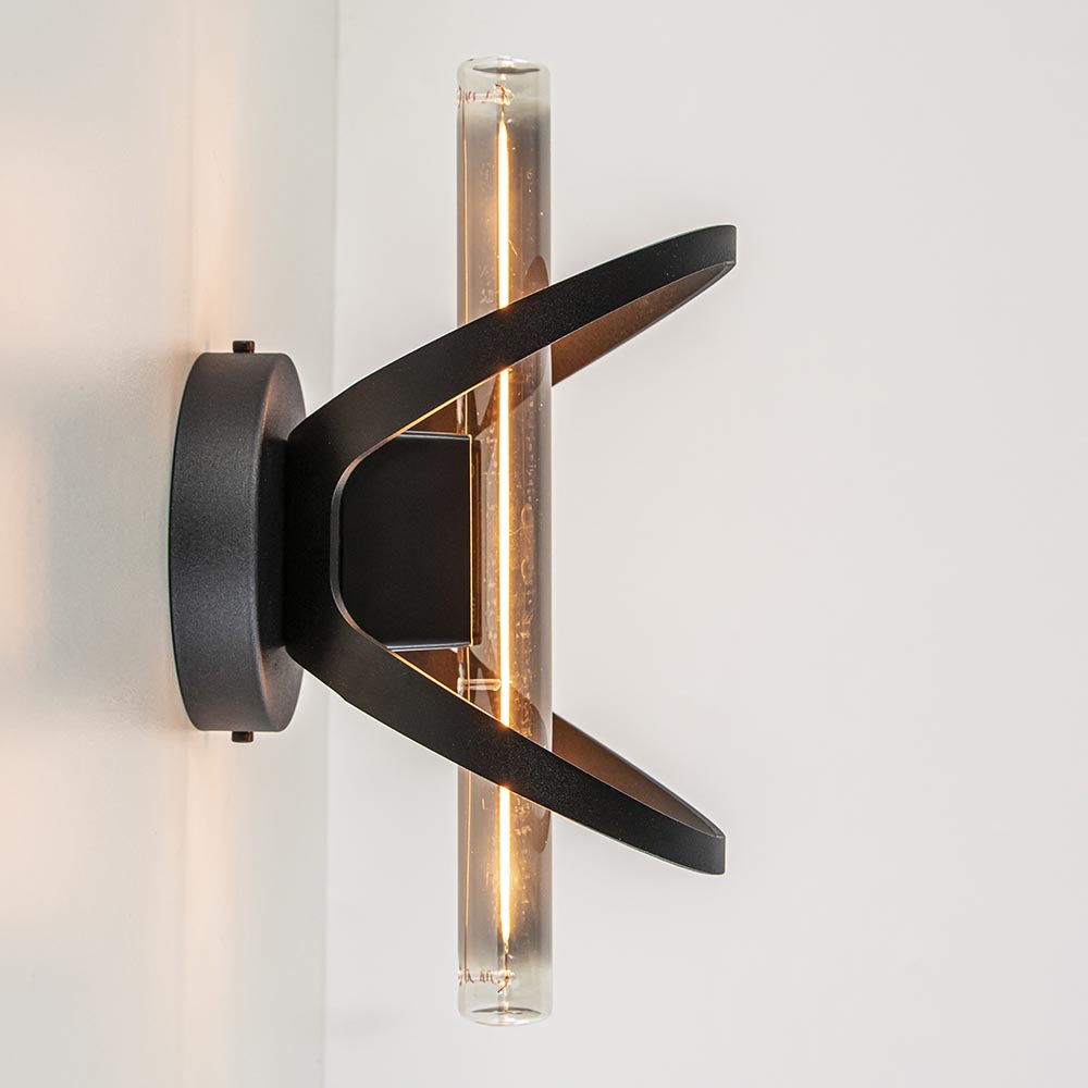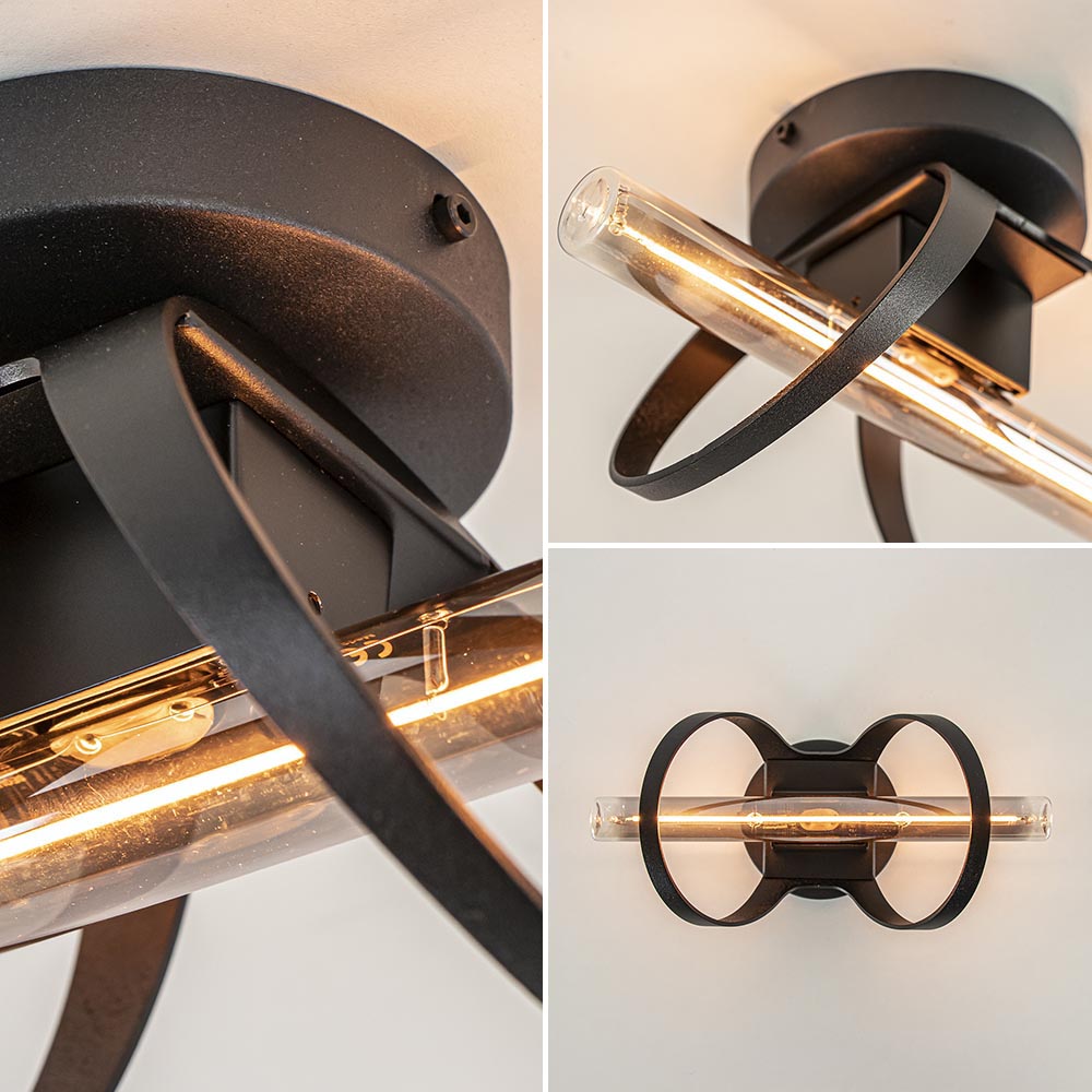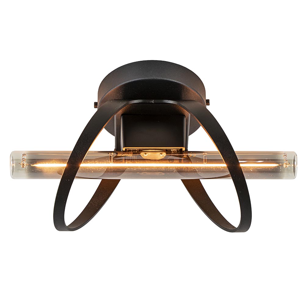 Klein van stuk maar prachtig van design. Deze kleine plafondlamp is mooie toevoeging aan het interieur. De plafondlamp kan ook als wandlamp worden toegepast en kan zo in diverse ruimtes als een woonkamer, slaapkamer of hal worden gebruikt. Het mat zwarte armatuur is voorzien van een S14d fitting en wordt geleverd exclusief lichtbron. Een buis model zoals in de foto’s is een mooie toevoeging aan de lamp.