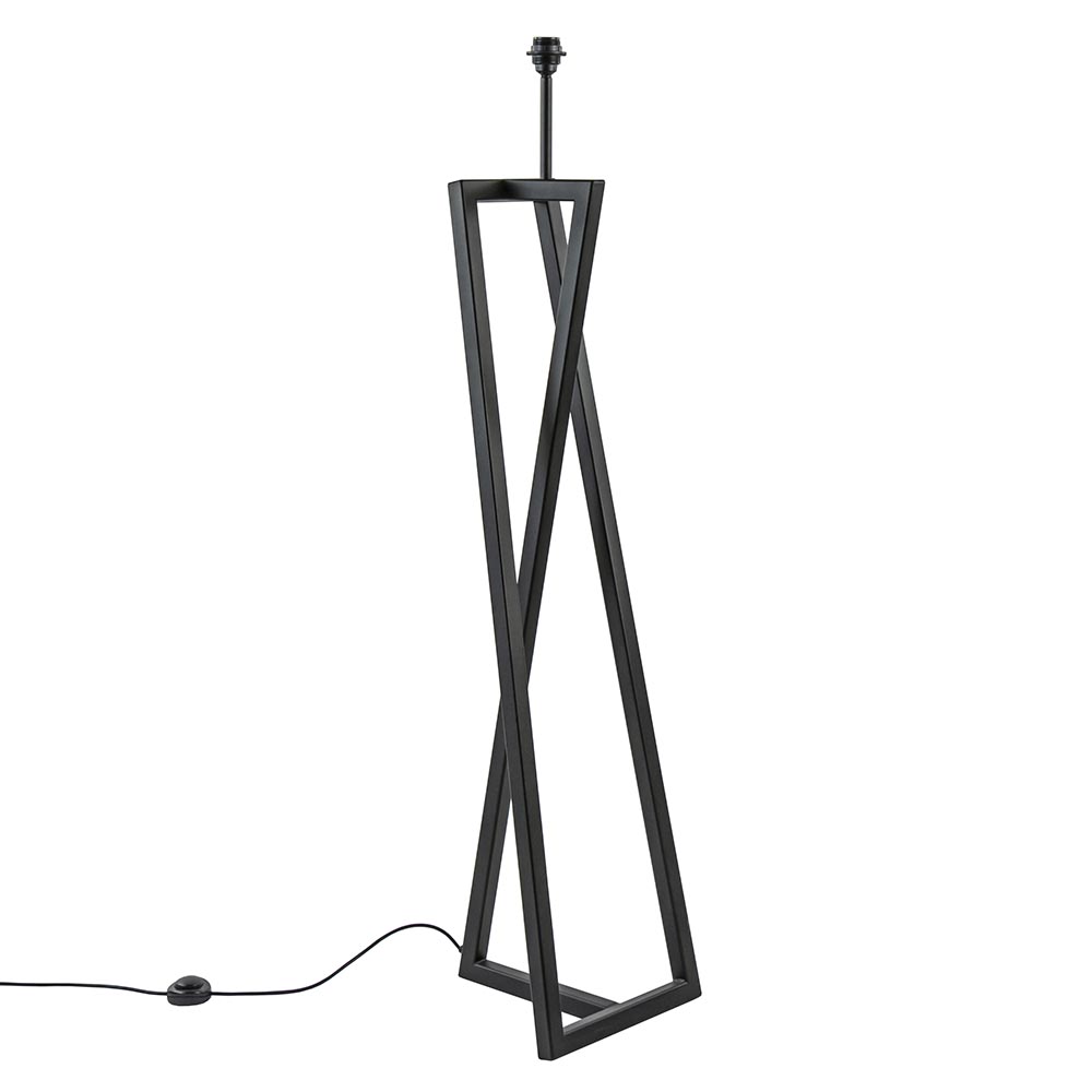 Een stoere robuuste vloerlamp met een hoog design gehalte. Deze vloerlamp is volledig vervaardigd van metaal en door echte ambacht gemaakt op Nederlandse bodem. Het metalen frame heeft een strakke afwerking en is voorzien van een mat zwarte finish. De staande lamp is voorzien van een zwart snoer met een lengte van 185 cm, de schakelaar bevindt zich op 45 cm in het snoer. De design lamp wordt geleverd zonder kap, zo kunt u de lamp zelf samenstellen zoals u wenst.