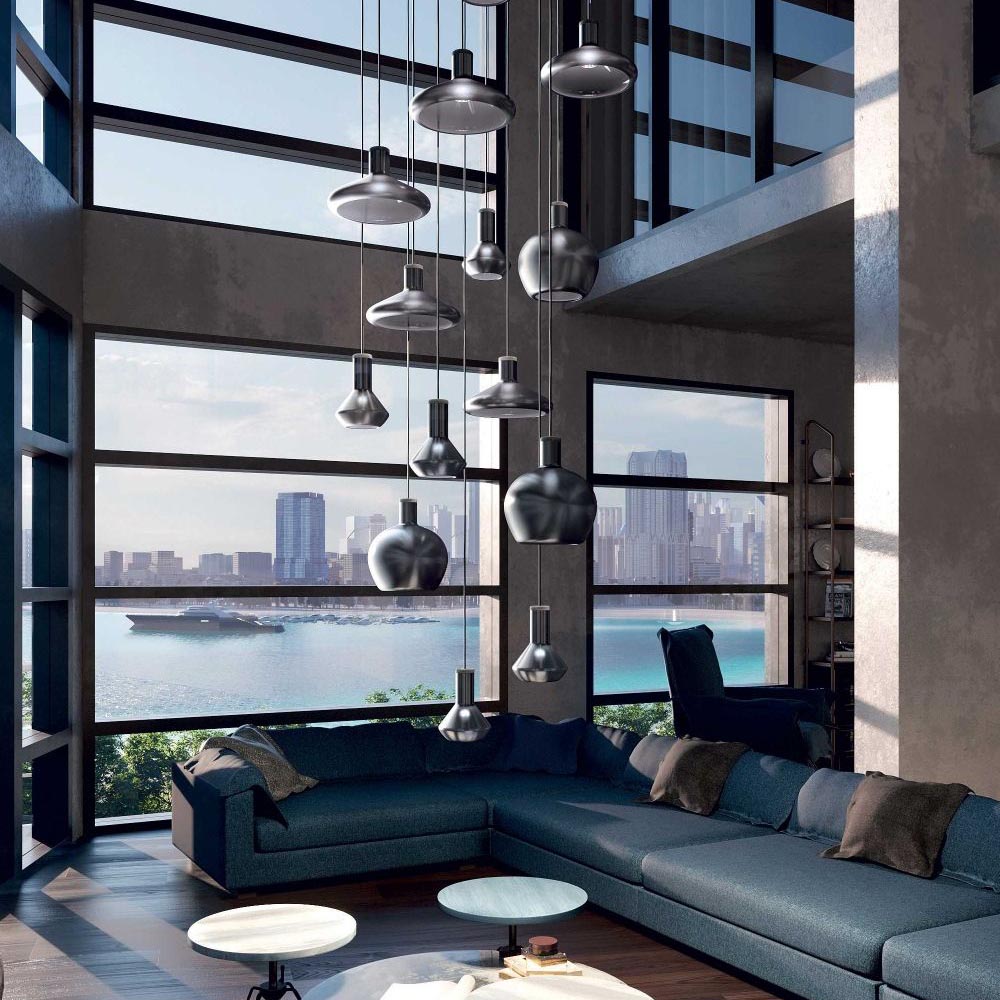 Uit de serie van Diesel Living with Lodes. Deze glazen hanglamp heeft een mooi design van Italiaans komaf. Het glas is geïnspireerd op de flesjes die ook te vinden zijn in laboratoria en geeft een mooi effect doordat deze van binnen glossy is en van buiten mat. Dit geeft het glas een stoere en robuuste uitstraling. Dit wordt versterkt door de hals die donker blijft en is afgewerkt met een mat zwarte kap waarop het logo van Diesel is te vinden. De combinatie maakt de lamp luxe, strak en industrieel tegelijk. De serie Flask bestaat uit 3 modellen die perfect met elkaar te bundelen zijn om zo een prachtige multi-pendel hanglamp te creëren.