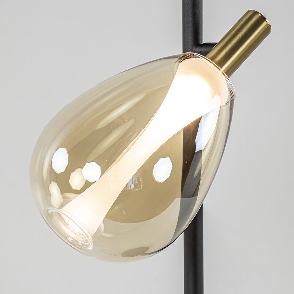 – afm: Ø25×58 cm – voet: Ø15×3 cm – kap: Ø14×27 cm – metaal, mat zwart/brons – amber glas – inclusief LED – 2700 Kelvin – 518 lumen – dimbaar – inclusief dimmer – zwart snoer