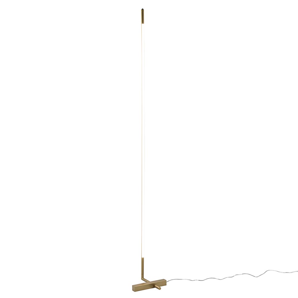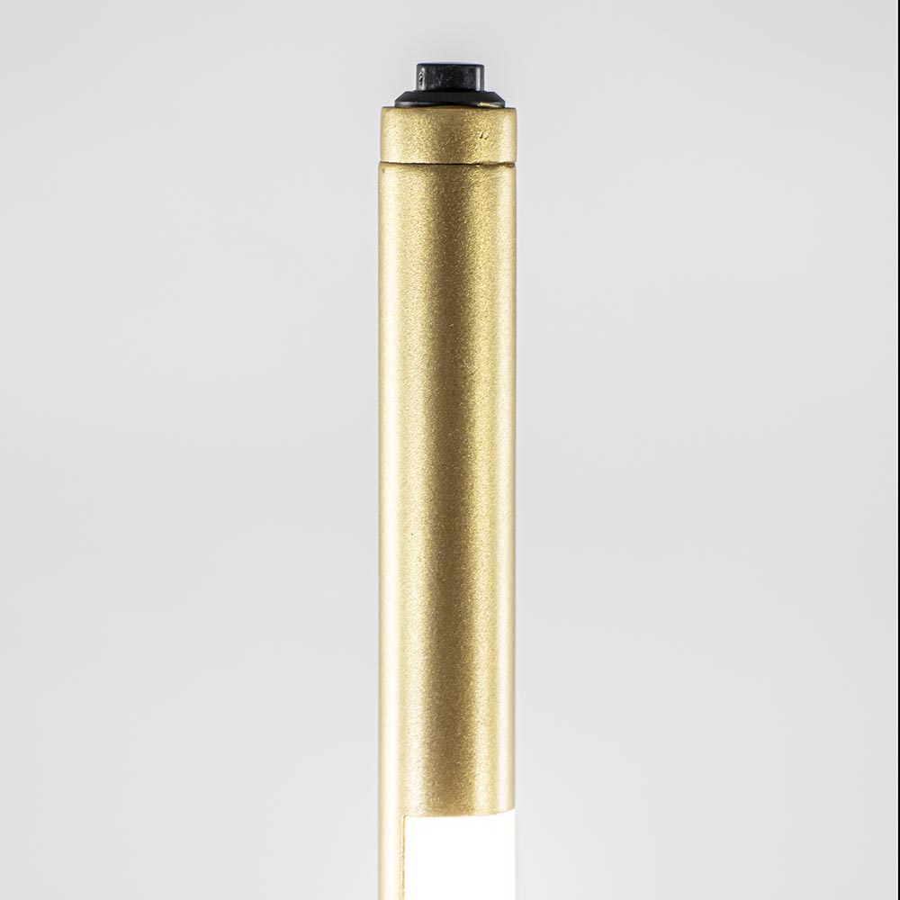 Een strak design met een sfeervol effect. Deze vloerlamp heeft een minimalistisch ontwerp maar valt wel degelijk op wanneer deze wordt ingeschakeld. De gouden vloerlamp is in het armatuur voorzien van een LED strip welke naar wens kan worden gedraaid. Zo kunt u een mooie indirecte lichtverspreiding in de ruimte maken door de lamp naar de muur te richten. Ook kunt u de verlichting dimmen dmv de dimmer op het armatuur. Houdt deze ingedrukt totdat u de juiste intensiteit heeft. De gouden LED vloerlamp heeft een transparant snoer met een lengte van 230 cm.