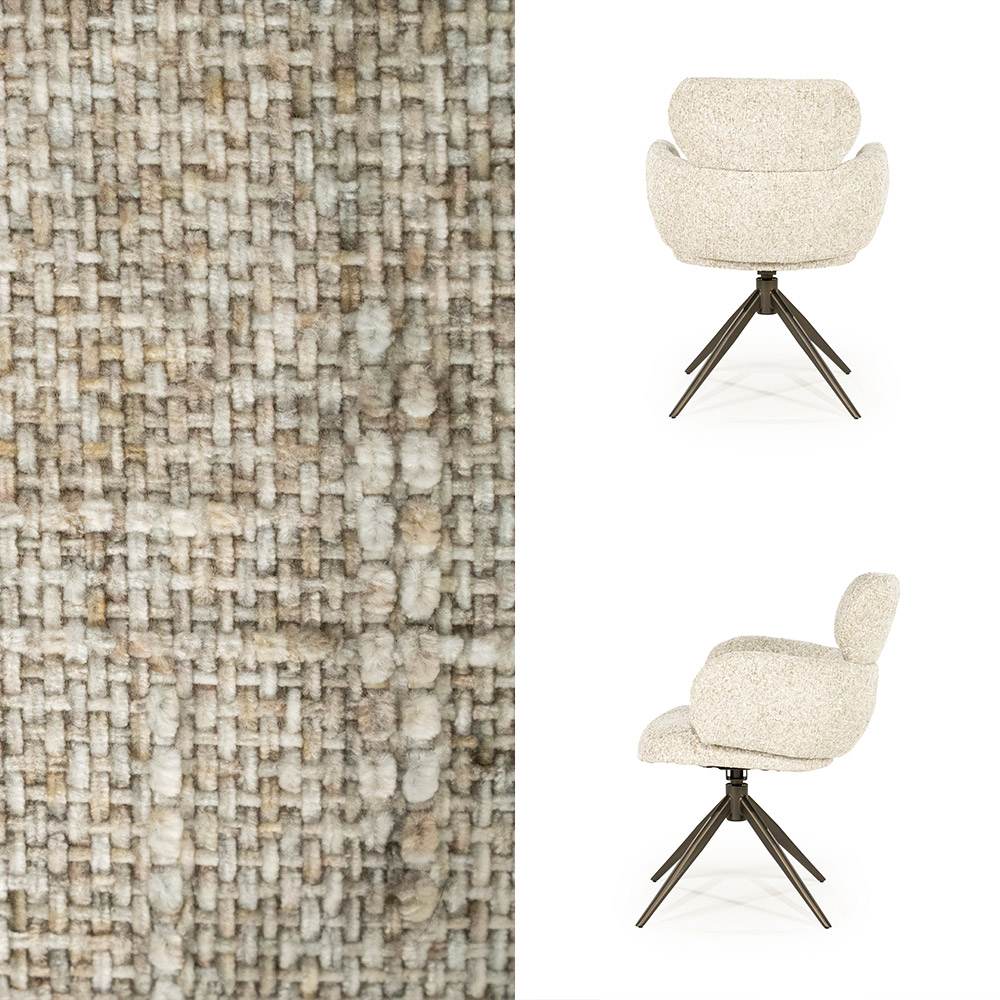 Eetkamerstoel Darcio – Gleam-stof – Beige – Draaibaar