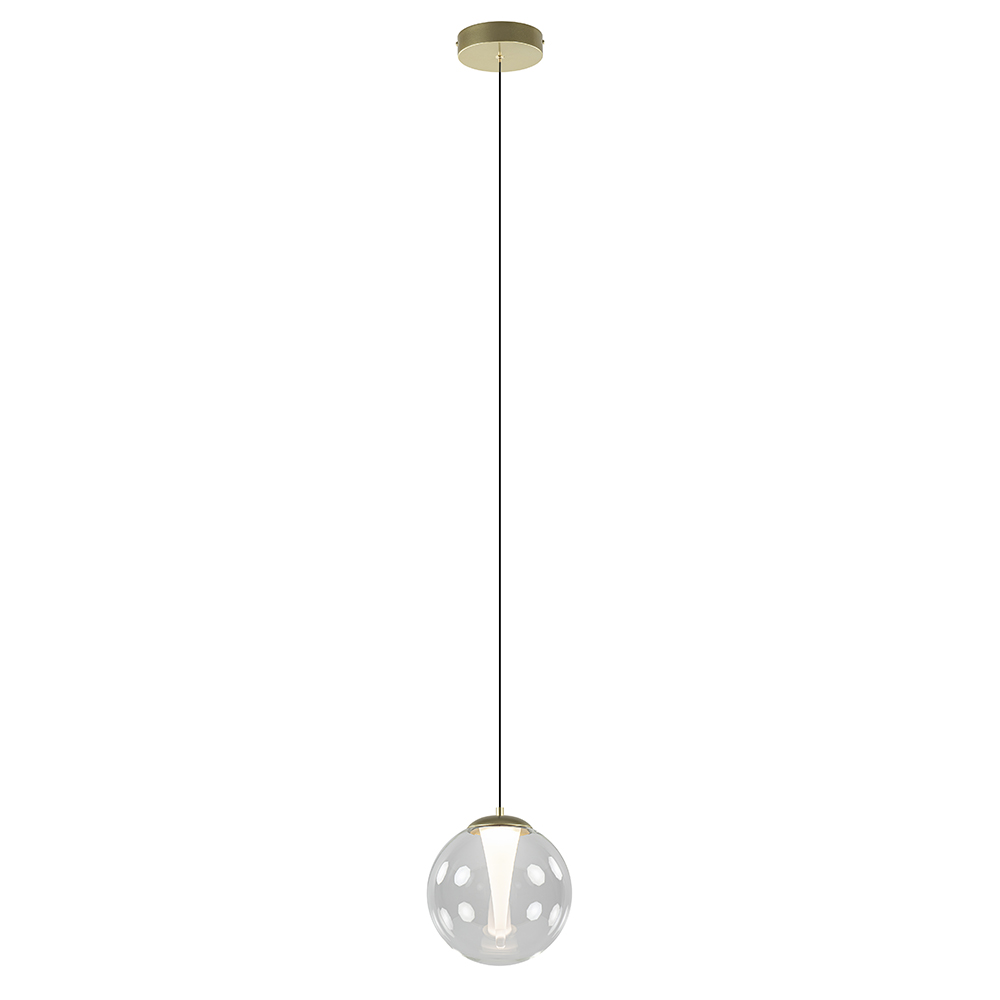 Ideaal om net even een donkere hoek uit te lichten of een leuke toevoeging in de hal, woonkamer of slaapkamer. Deze elegante hanglamp zorgt voor sfeer en karakter in het interieur. Het heldere glas blend mooi mee in de ruimte en is van binnen voorzien van een extra mat glas. Deze licht op zodra de lamp wordt ingeschakeld en zorgt zo voor een mooi effect in de kap. De hanglamp is voorzien van geïntegreerd LED en is dimbaar middels een externe dimmer (exclusief). Het heldere glas is gecombineerd met een gouden armatuur en een zwart snoer welke naar wens is in te korten.